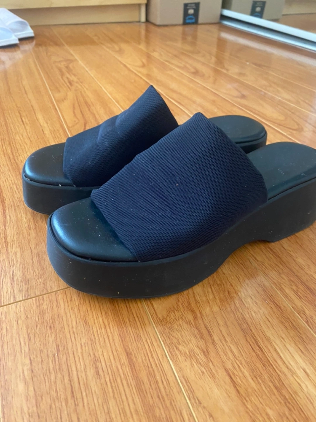 Similar to these: https://lintervalleshoes.com/collections/all-sandals/products/upton-black-lycra-lycra-noir?variant=40149804580944