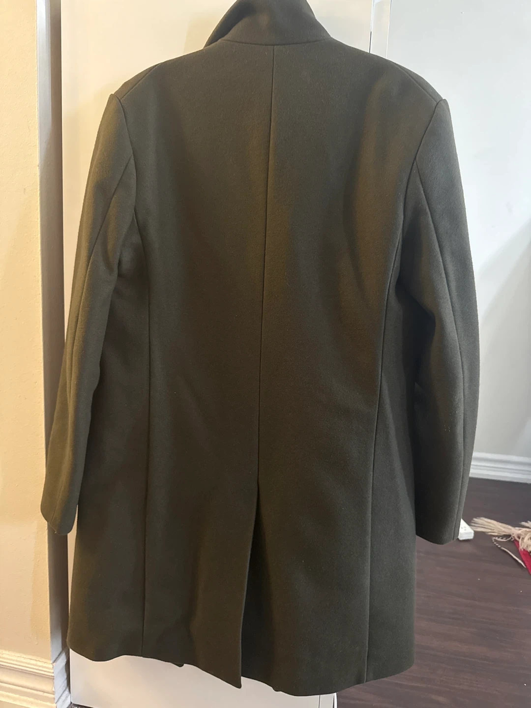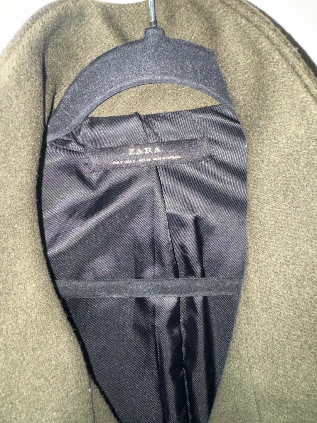 This Zara olive green colour coat . It's made from a wool blend and features a sleek, modern design with button closures. This coat is perfect for cooler weather!
