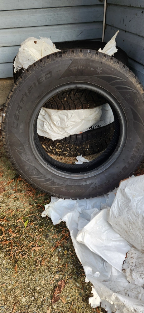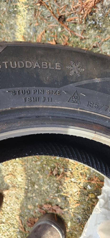 Winter tires with size 185/70R14. They're studdable for added traction in icy conditions. These tires are designed for winter driving.