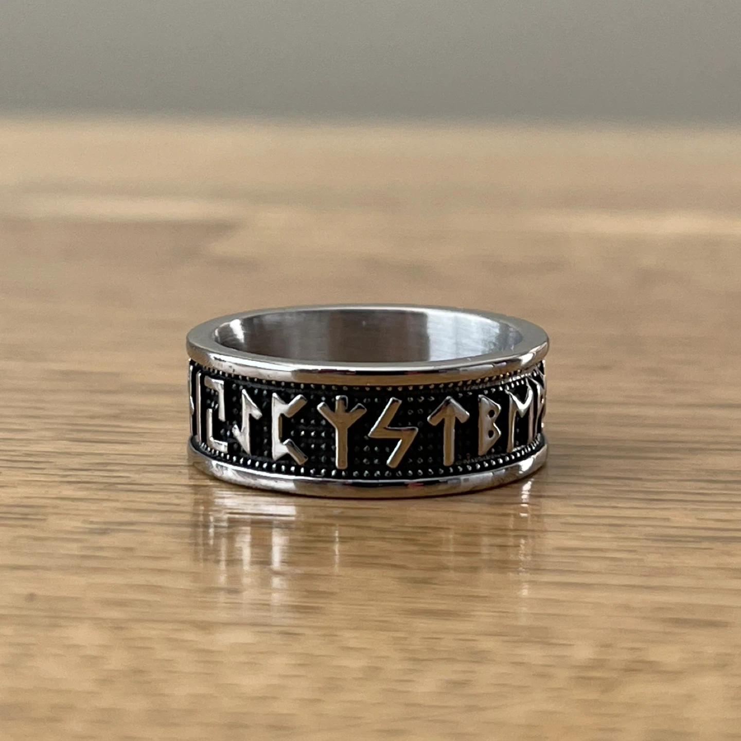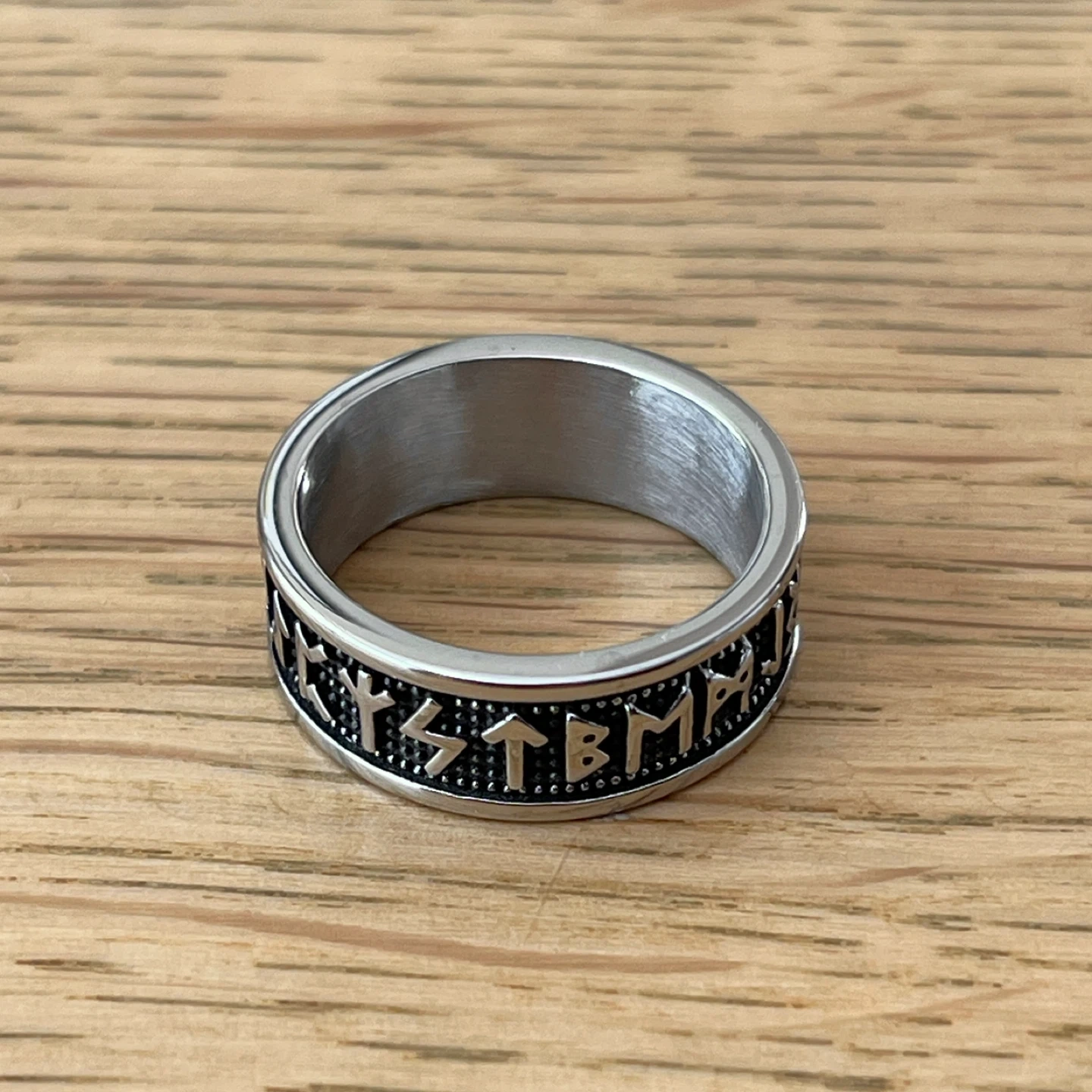 Viking Runes stainless steel ring (size 8)