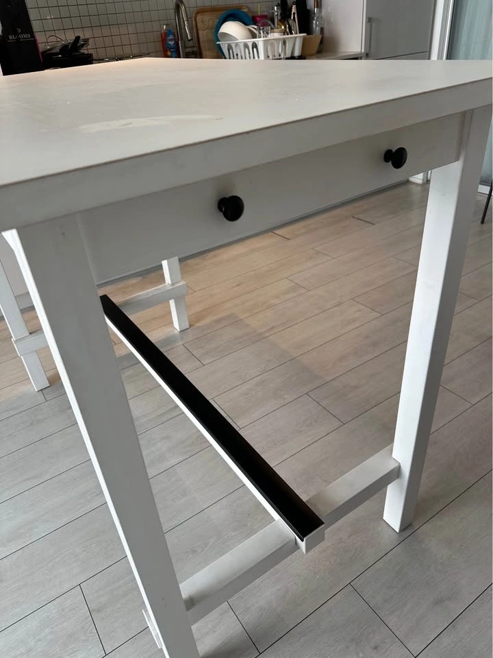 Moving sale! Selling this IKEA NORDVIKEN bar table in white. It’s a sturdy, versatile piece that works perfectly as a high dining table, a kitchen island, or a standing desk. Features: Includes a handy drawer for cutlery or office supplies and a footrest for extra comfort. Condition: Good used condition. Well-maintained in a clean home. Dimensions: 55 1/8" (Length) x 31 1/2" (Width) x 41 3/8" (Height). Material: Solid wood/fiberboard—very durable and easy to wipe clean. Pickup: Must be picked up by January 30th in Vaughan Metropolitan Centre. Transport: The legs can be removed for easier transport. Will fit in most SUVs with the seats down.