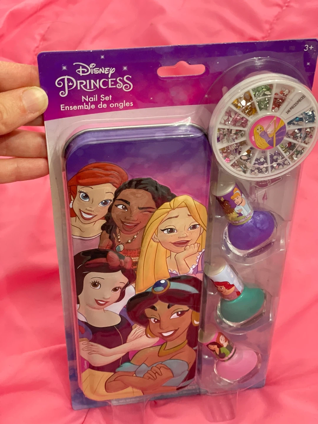 Includes 3 nail polishes, 240 piece nail art gems & 1 tin