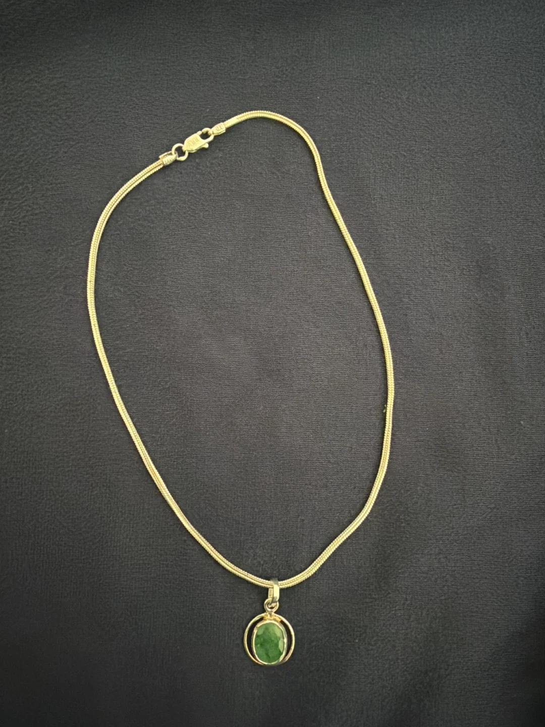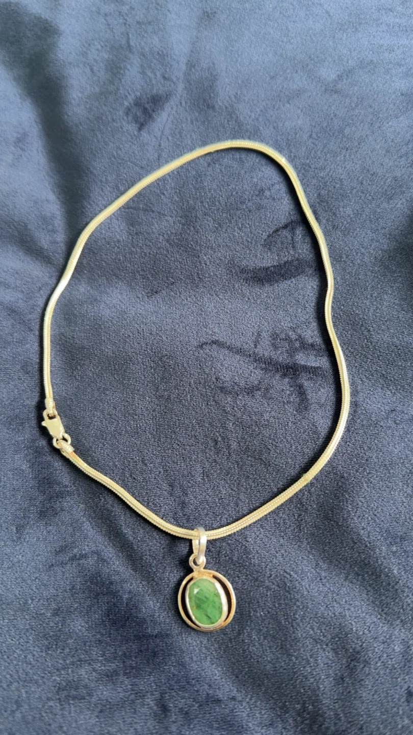 This necklace features pure silver chain with a smooth, oval-shaped green pendant. The chain has a snake-like texture and a secure clasp. It's a lovely accessory for everyday wear
