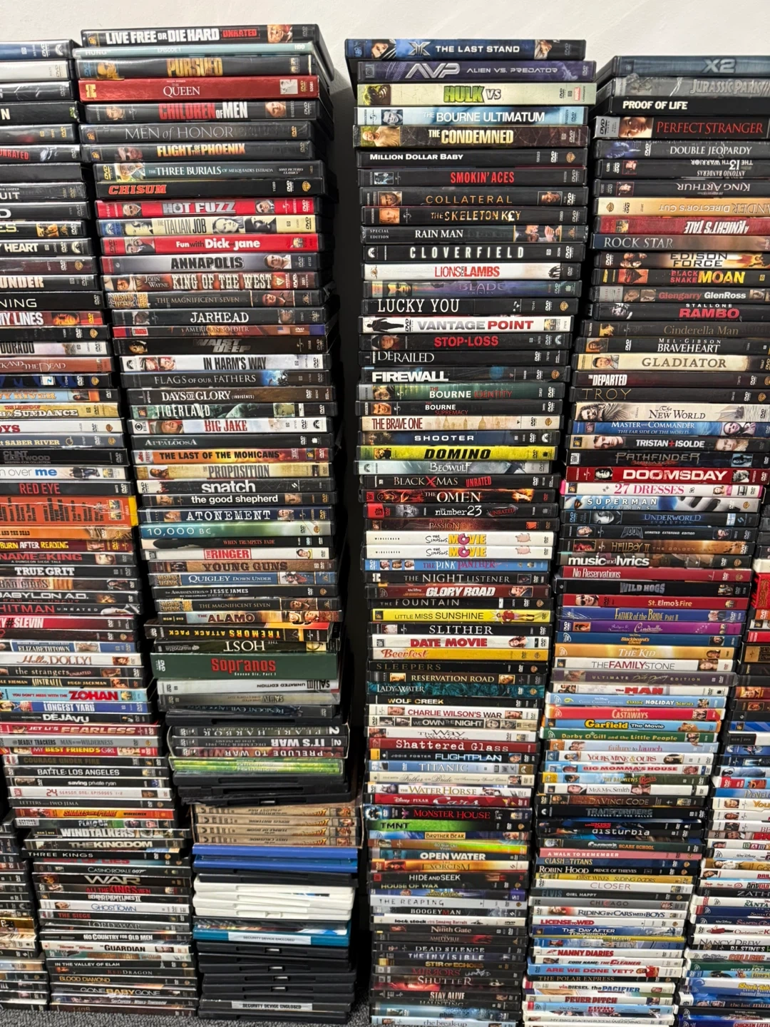 Large collection of assorted DVD movies. Titles vary widely across genres. 500 of them give or take. Only selling the lot. I need them gone. Open to offers within reason.