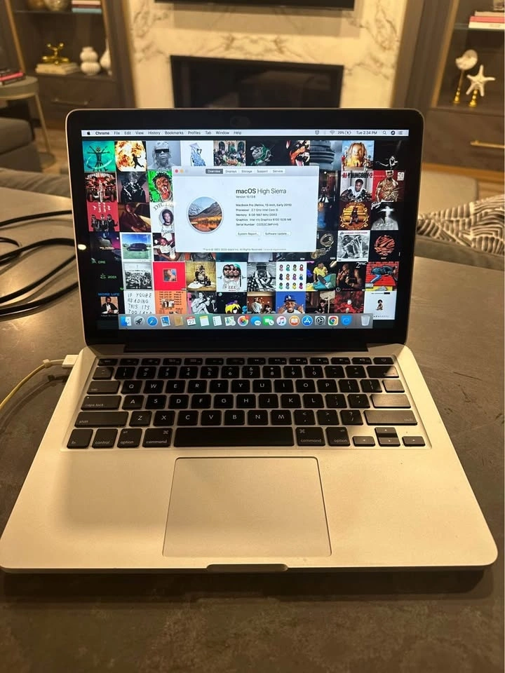 MacBook Pro running the macOS High Sierra operating system. Model: MacBook Pro (Retina, 13-inch, Early 2015). Operating System: macOS High Sierra, Version 10.13.6. Processor: 2.7 GHz Intel Core i5. Memory: 8 GB 1867 MHz DDR3. Graphics: Intel Iris Graphics 6100 1536 MB.