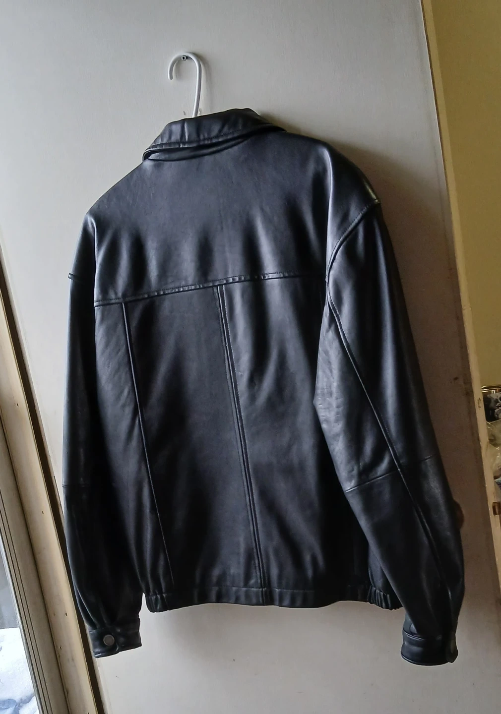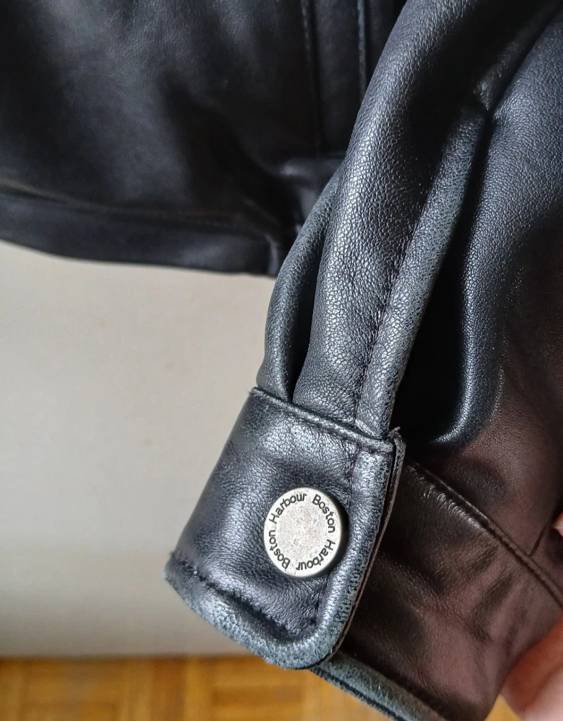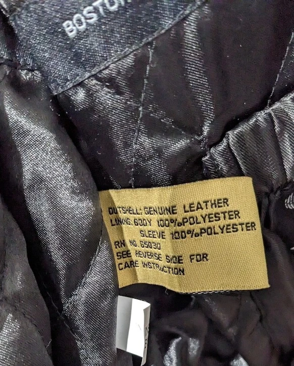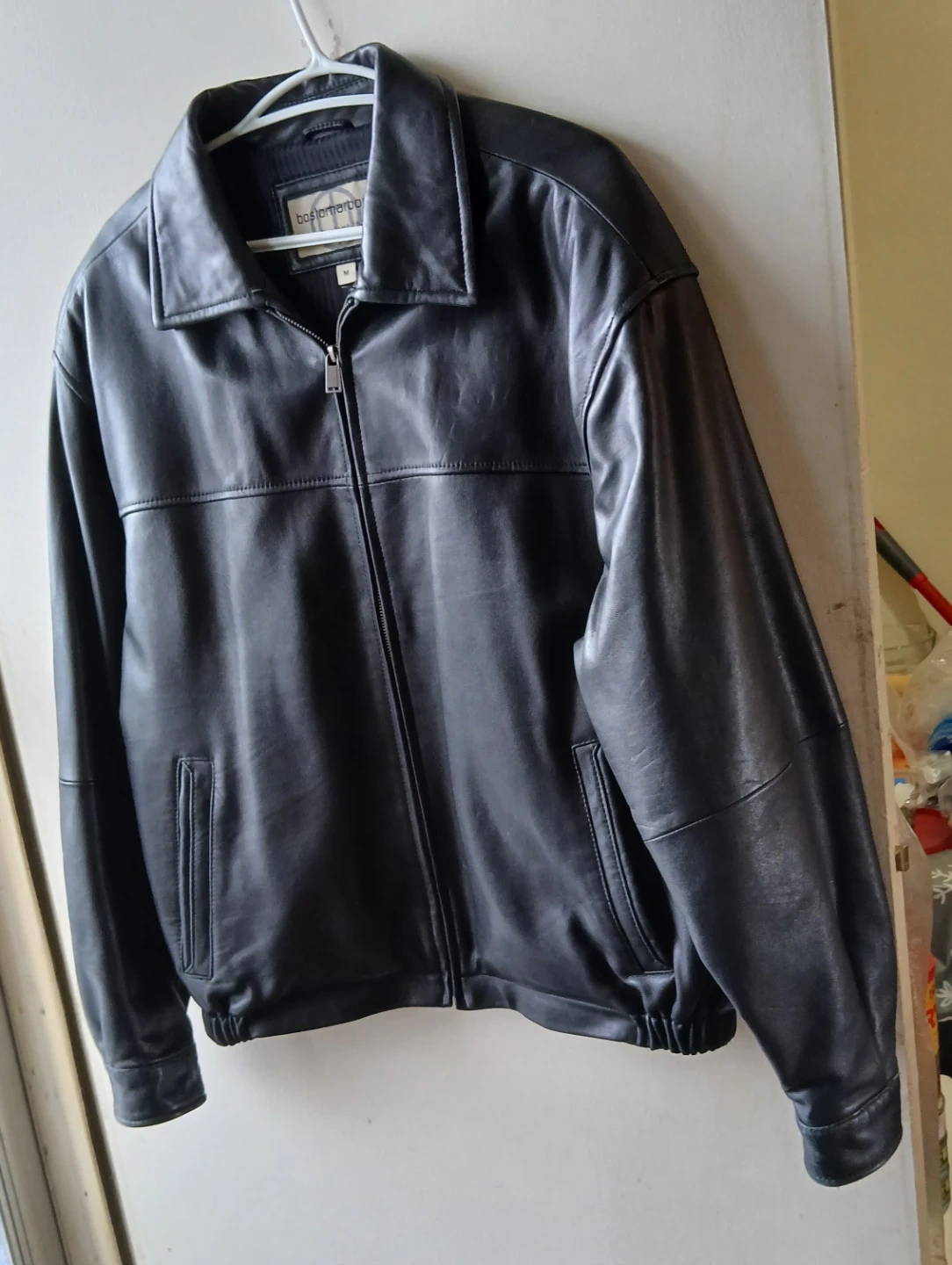 Boston Harbour genuine leather jacket. Outershell is genuine leather with a 100% polyester lining. Sleeve lining is also 100% polyester. This classic jacket is ready for a new owner!