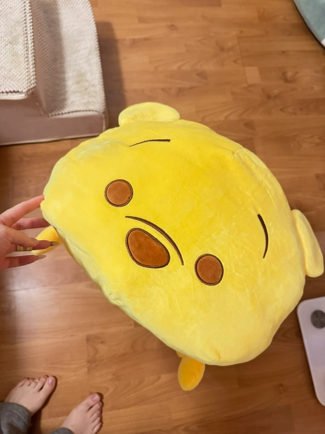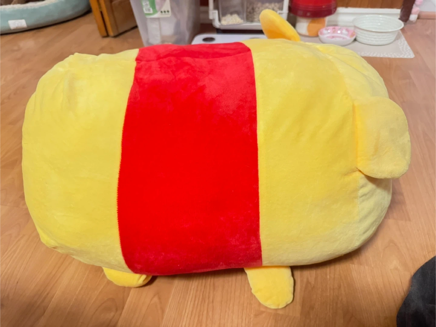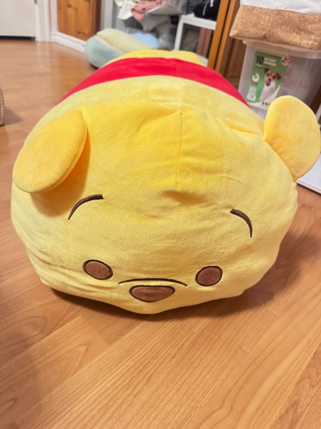 Super soft and huggable Winnie the Pooh plush pillow. It's bright yellow with his iconic red shirt. Perfect for lounging or as a cute room decoration!