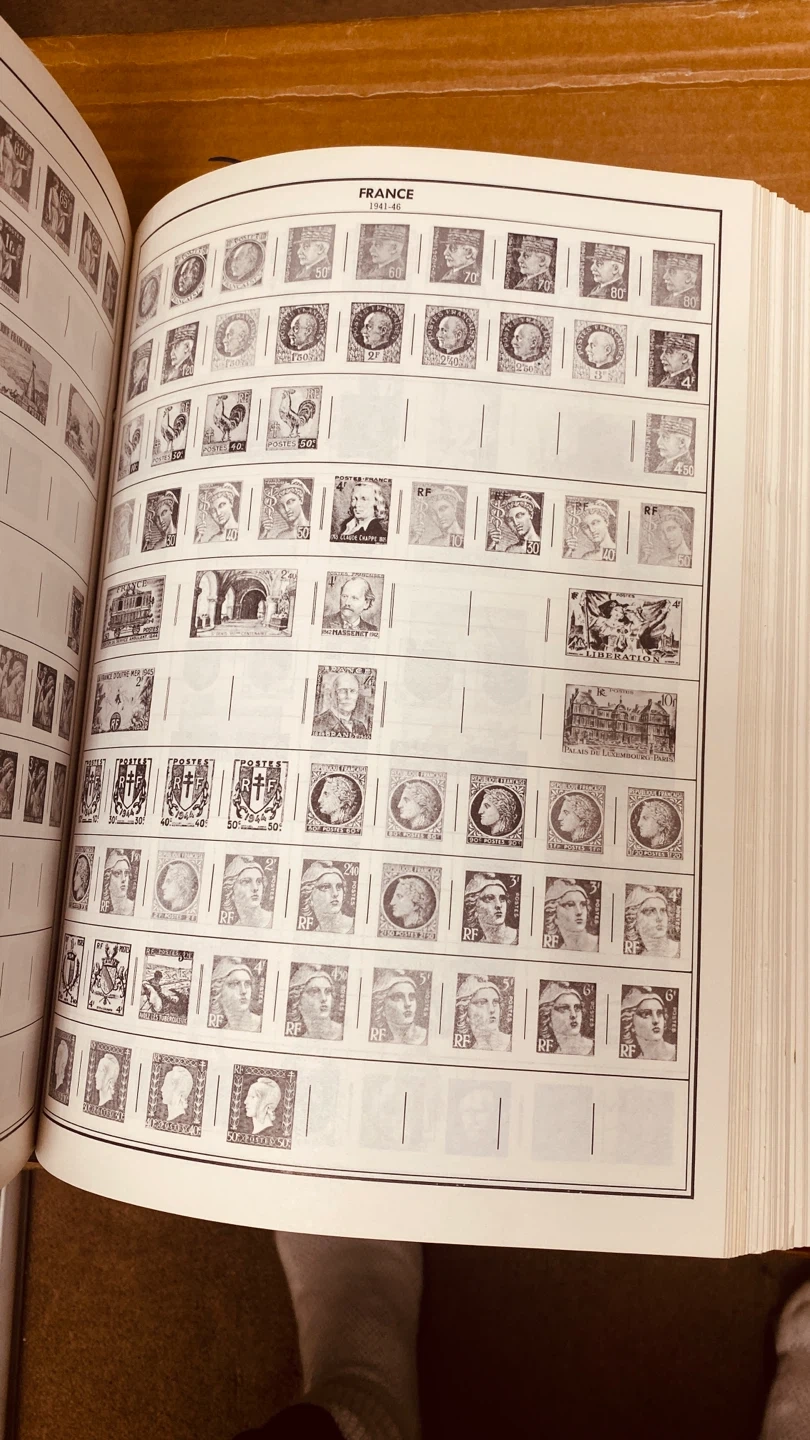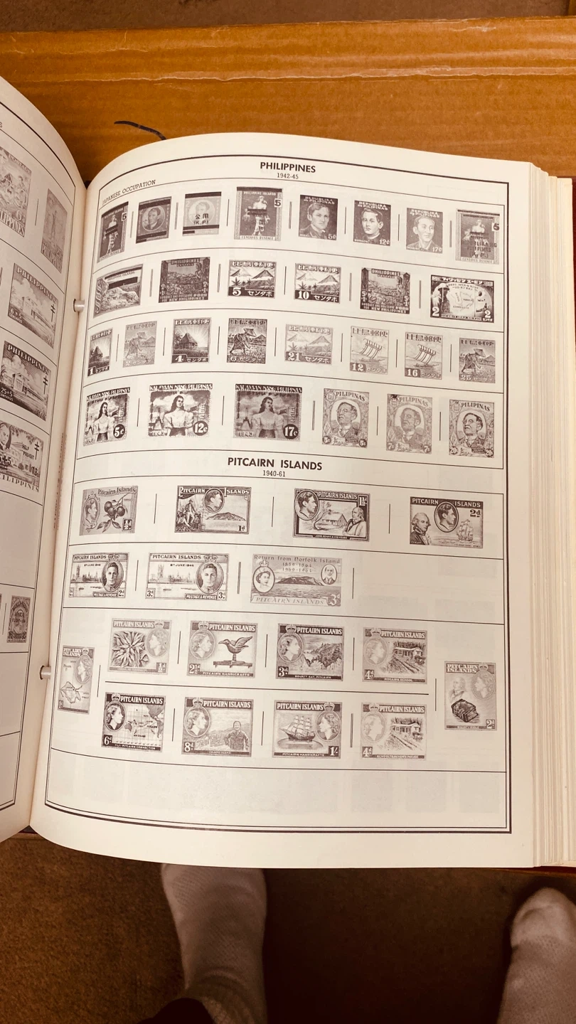 This postage stamp album is compiled by H. L. Harris and has spaces for over 34,000 stamps worldwide. It's designed to hold a vast collection. This album is perfect for serious stamp collectors who need organized storage for their philatelic treasures.