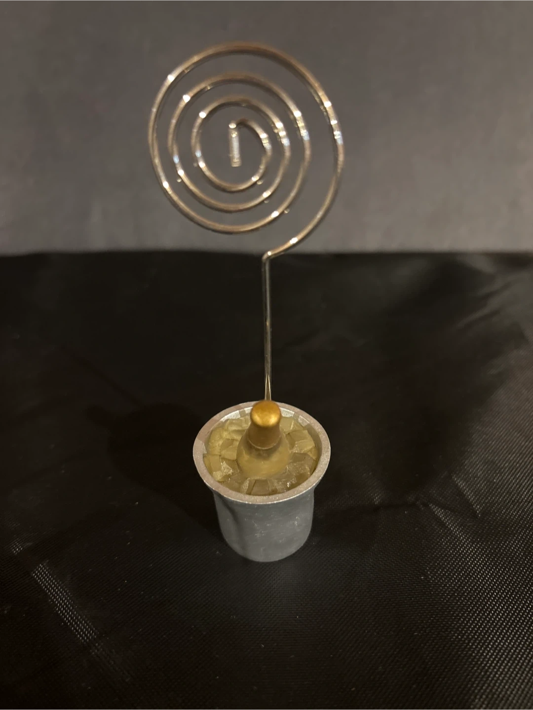 These are cute little holders for table numbers or photos. They have a silver spiral top with a weighted base that looks like a miniature champagne bucket. Perfect for weddings or special events! 4H