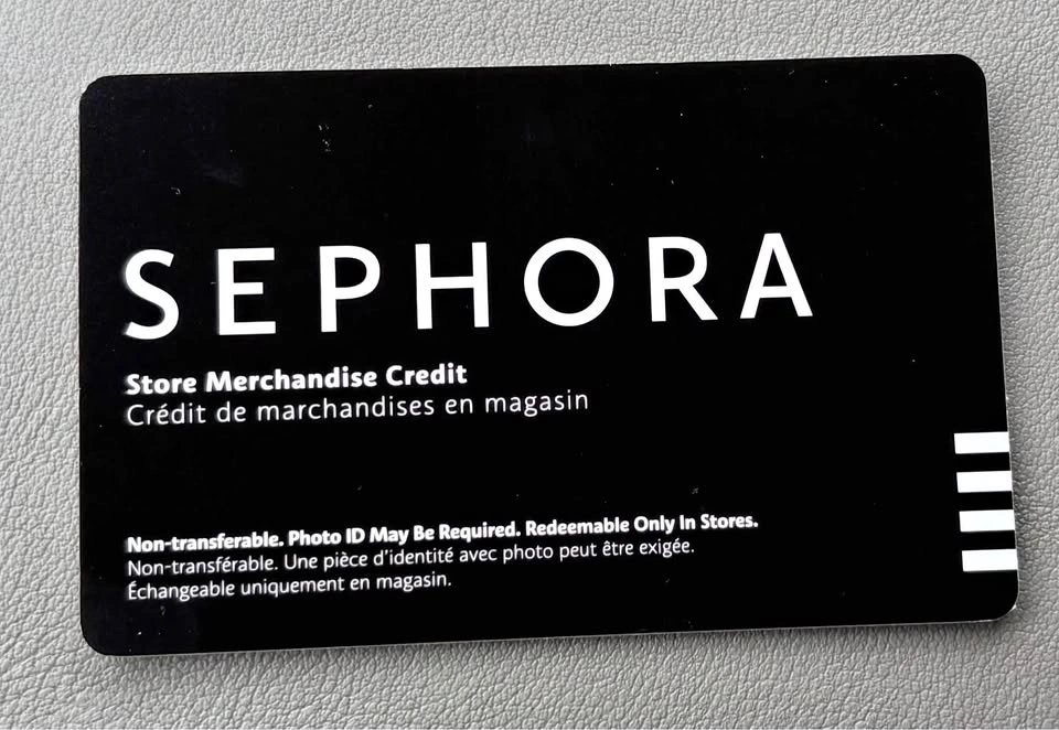 Sephora store merchandise credit with a confirmed balance of $64.41. Issued from a return and redeemable in store at Sephora. Card is not linked to an account and can be used by the holder. Receipt shown to confirm balance. Balance: $64.41. Use: In-store Sephora purchases.
