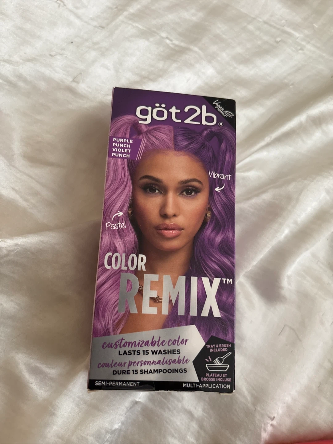 This got2b Color Remix is a semi-permanent hair dye. It offers customizable colour and lasts up to 15 washes. A tray and brush are included for multi-application.