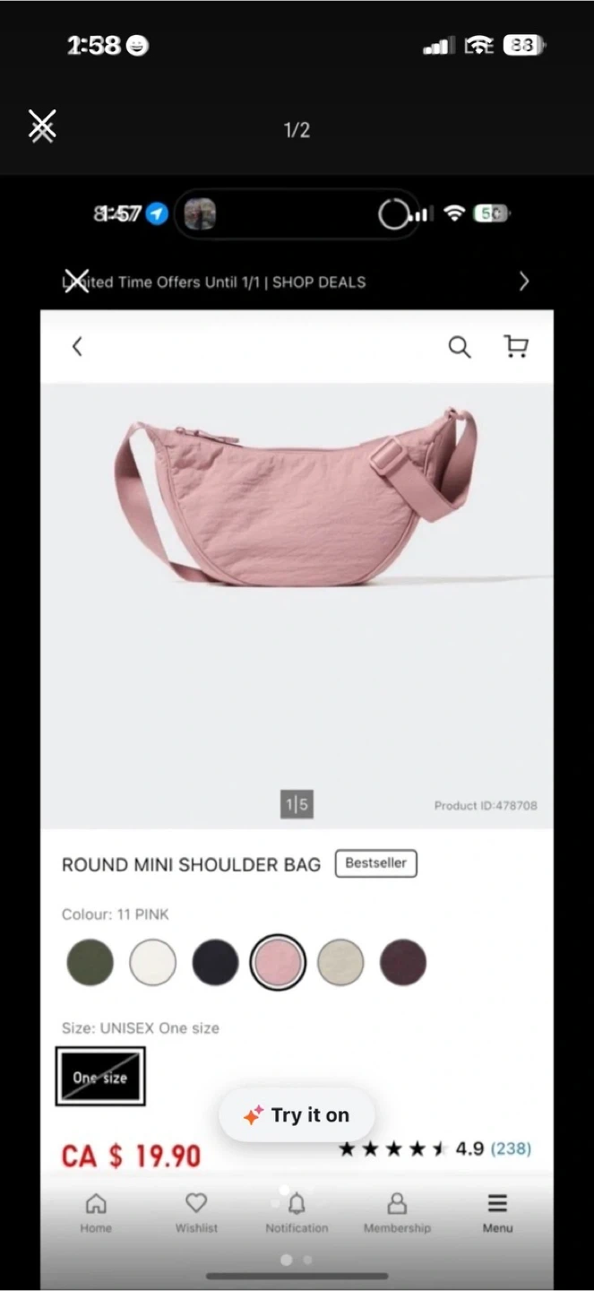 This is a stylish round mini shoulder bag in a lovely pink colour. It's a one-size fits all design with an adjustable strap. Great for carrying your essentials on the go! Pick up cash only