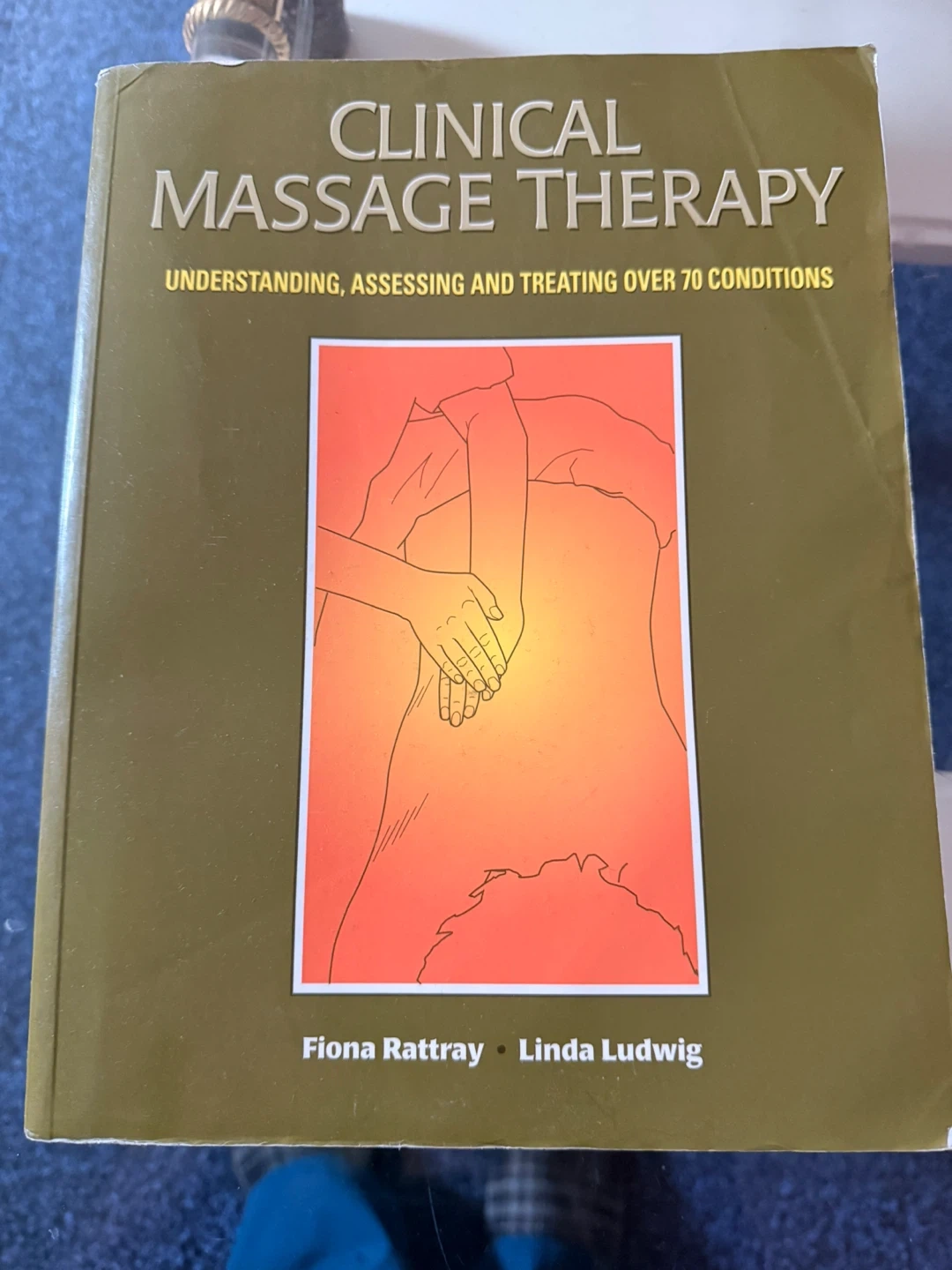 This book covers understanding, assessing, and treating over 70 conditions with clinical massage therapy. It includes detailed sections on subjective information, objective information, testing, and palpation. Developed by Fiona Rattray and Linda Ludwig.