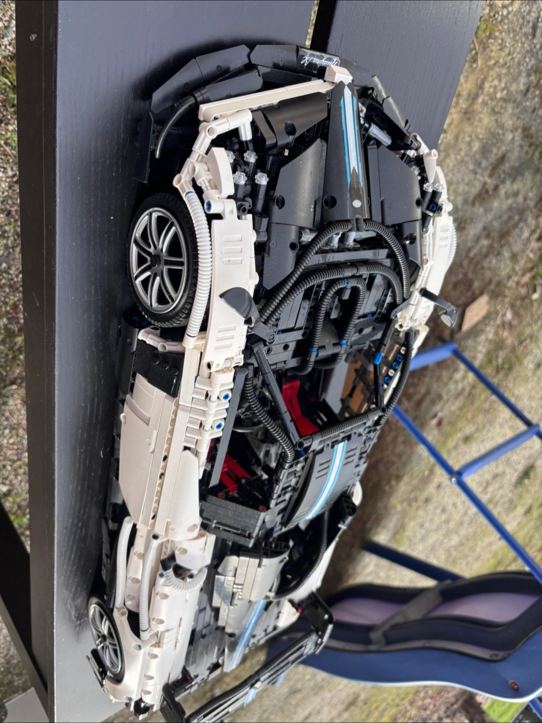 This is a detailed LEGO Technic car model. It features intricate mechanical components and realistic design elements. It's built for display or play.