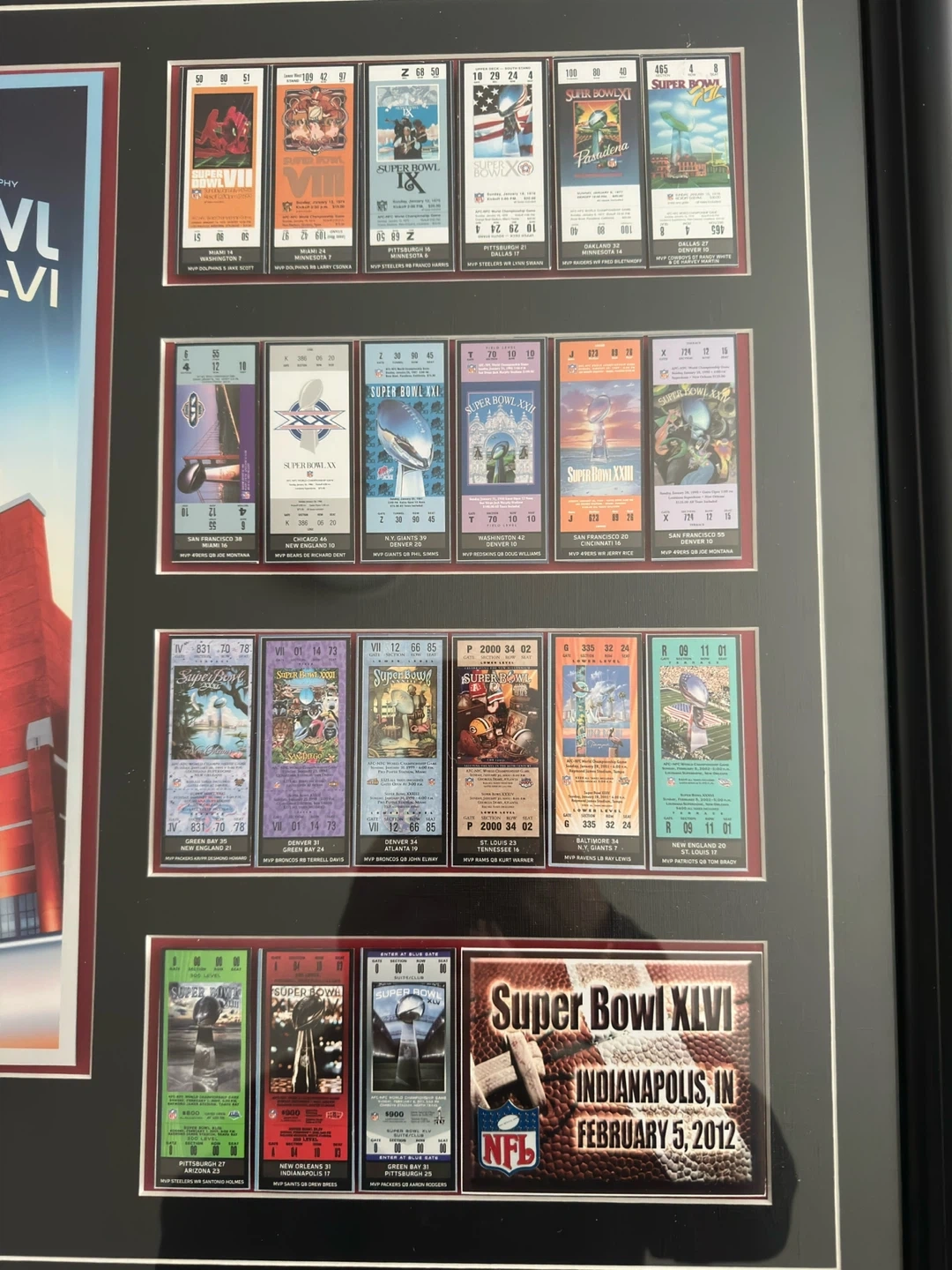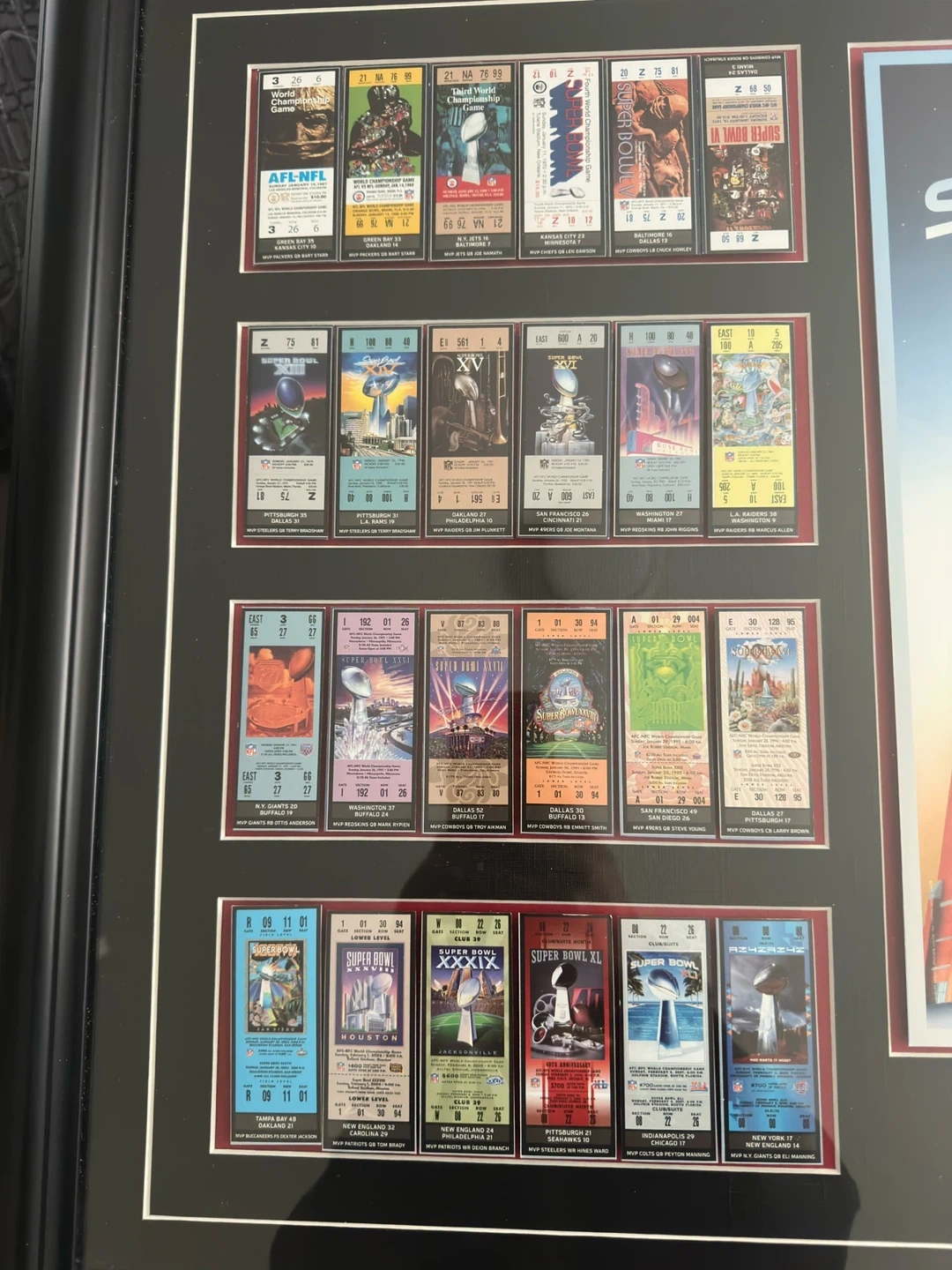 Framed Collection of Super Bowl Ticket Stubs