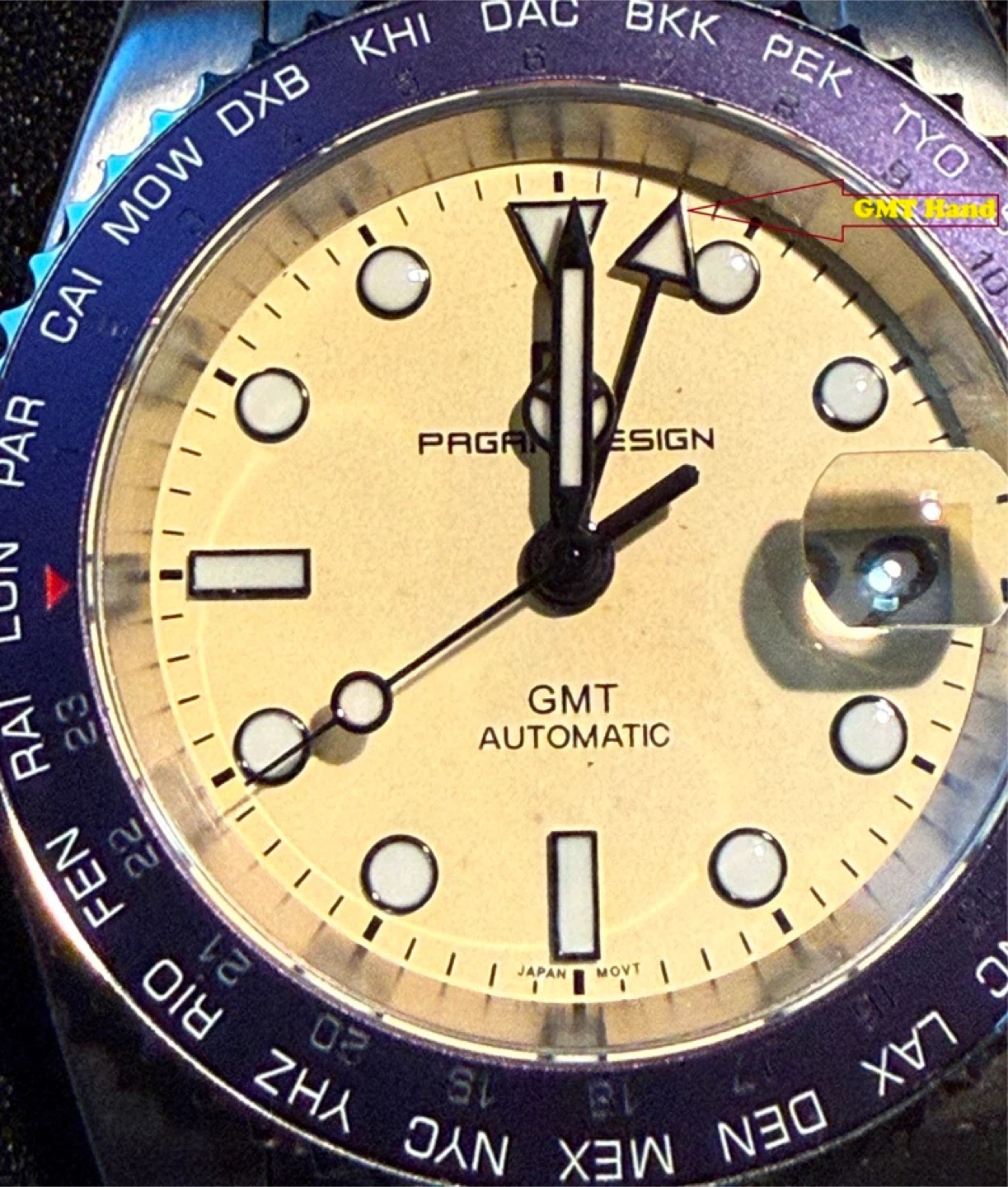 GMT Hand moves & can be set independently & the 120 City Clicks can be used to measure 3rd Time Zone