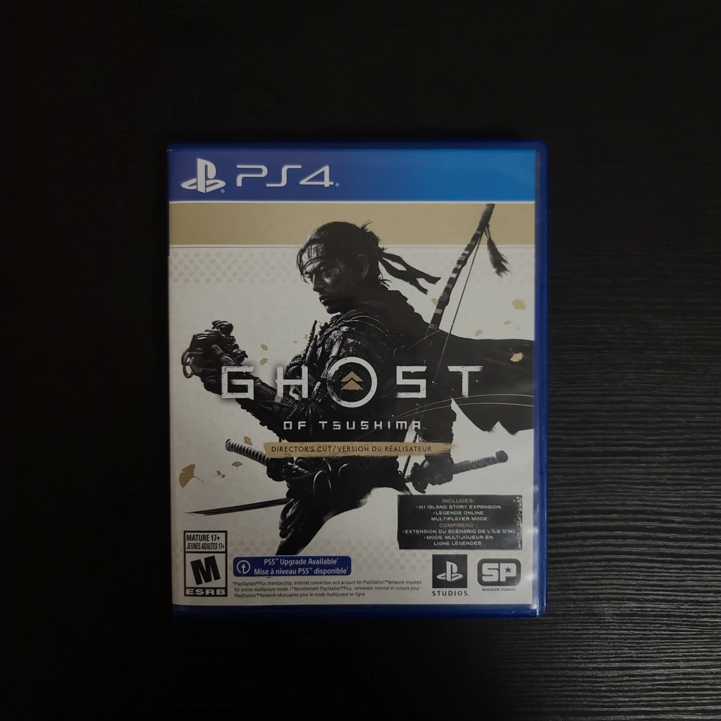 This is the Director's Cut of Ghost of Tsushima for PlayStation 4. It includes the Iki Island Story Expansion and Legends online multiplayer mode.