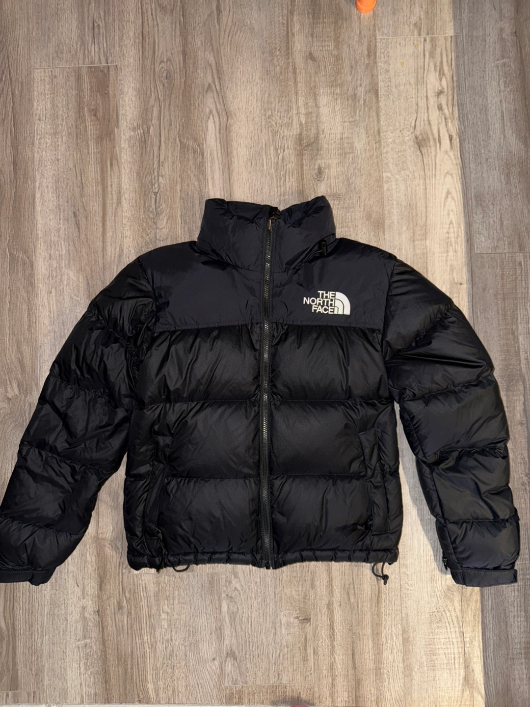 This is a black puffer jacket from The North Face. It's a women's size small. It's a warm and stylish outerwear piece. Worn a few times, pick up by the Eaton Center at my condo, $150