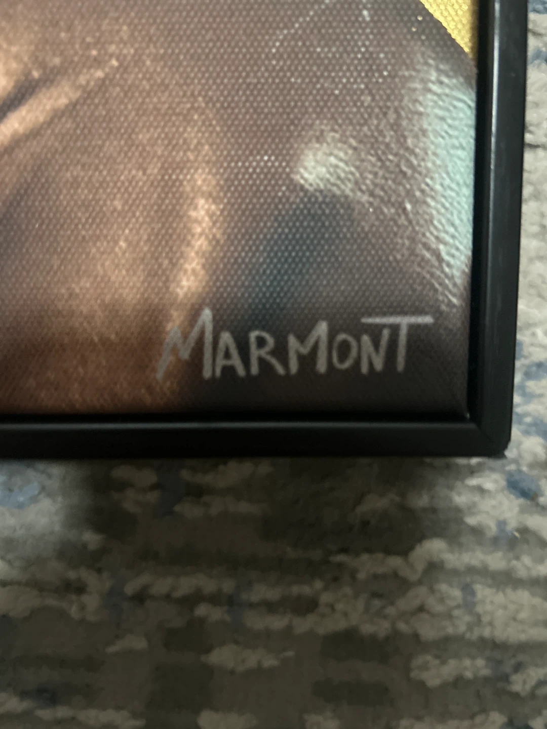 Beautiful Marmont framed canvas wall art featuring a gold textured background with a floral portrait design. Very stylish piece that looks great in a living room, bedroom, or hallway.