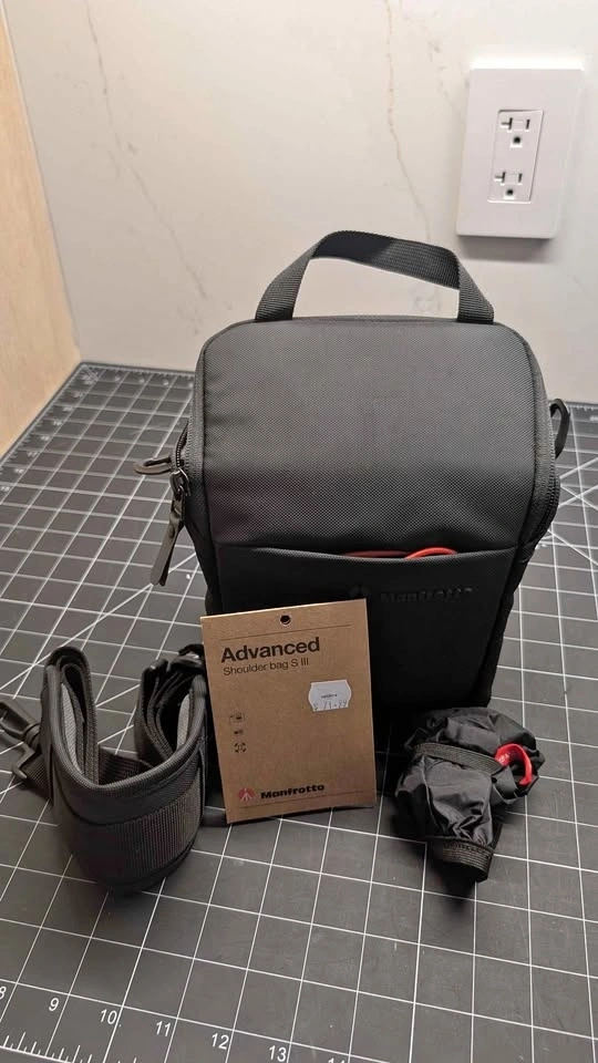 Selling a brand new, never used Manfrotto Advanced Shoulder Bag S III. Still has the original retail tag on it. Perfect for safely carrying a compact DSLR or mirrorless camera with a lens attached, plus small accessories.