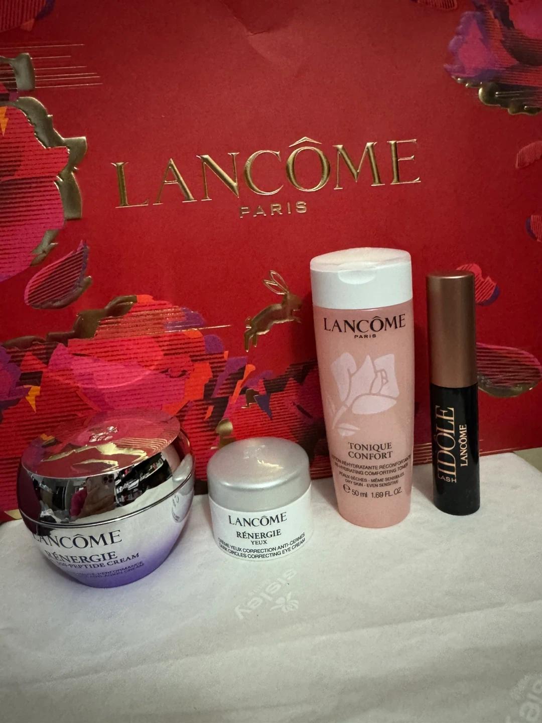 This Lancôme set includes Renergie Lift-Action 50-ml Face Cream, Renergie Yeux Anti-Wrinkle Correcting Eye Cream, and Tonique Confort Hydrating Toner. It also comes with a mini Idole mascara. All travel-sized products are perfect for trying out or for on-the-go touch-ups!