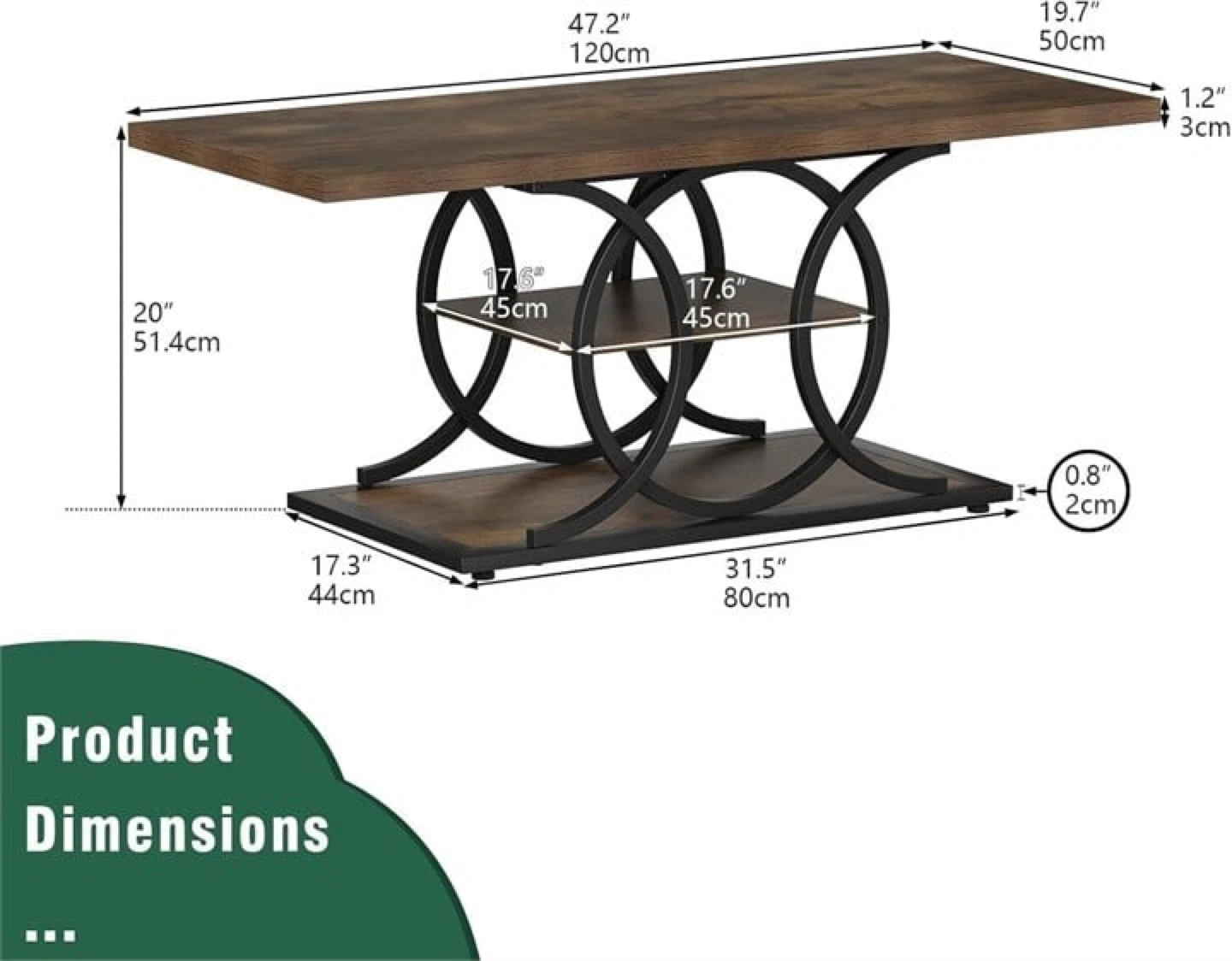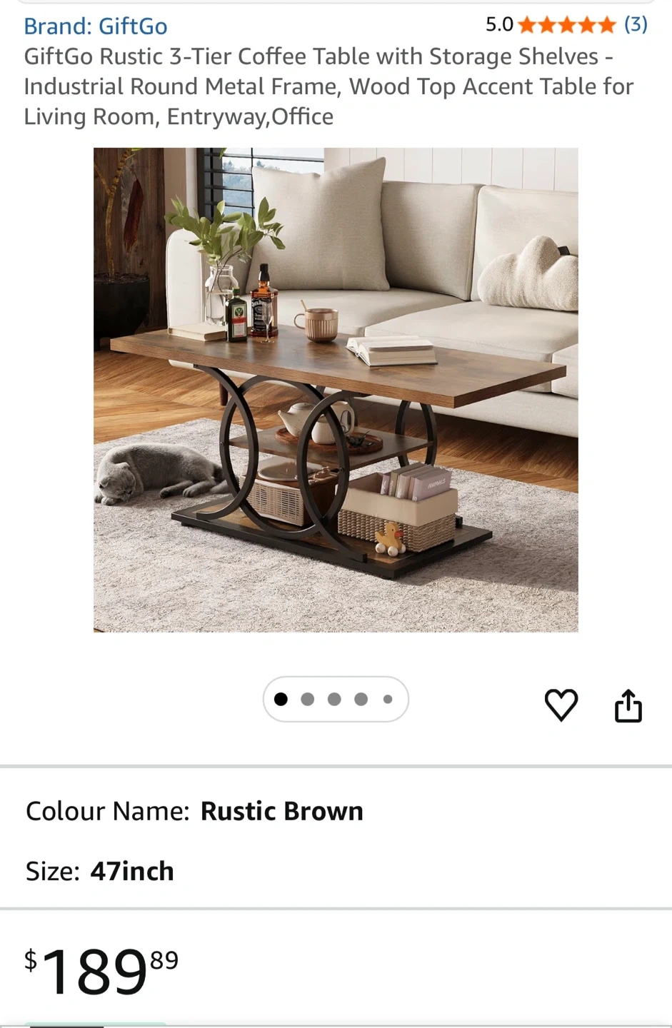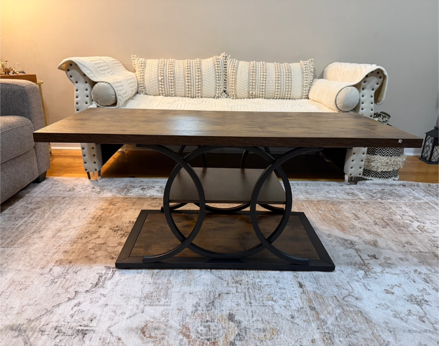 This coffee table is brand new and never used. It was taken out of the box and fully assembled, but never placed into use.