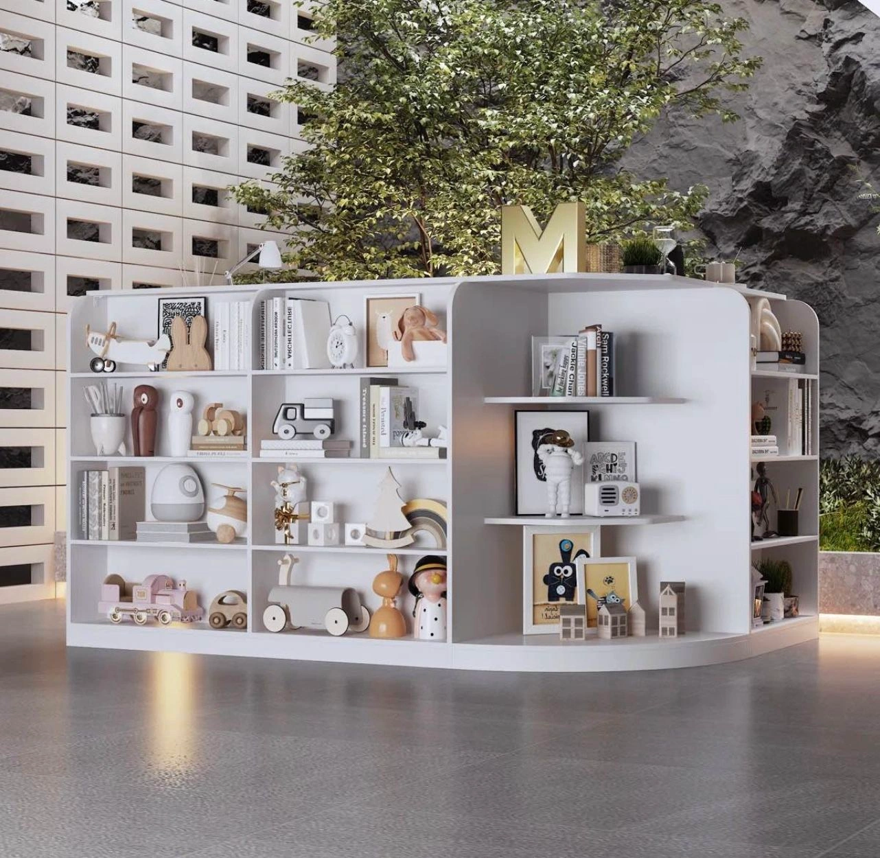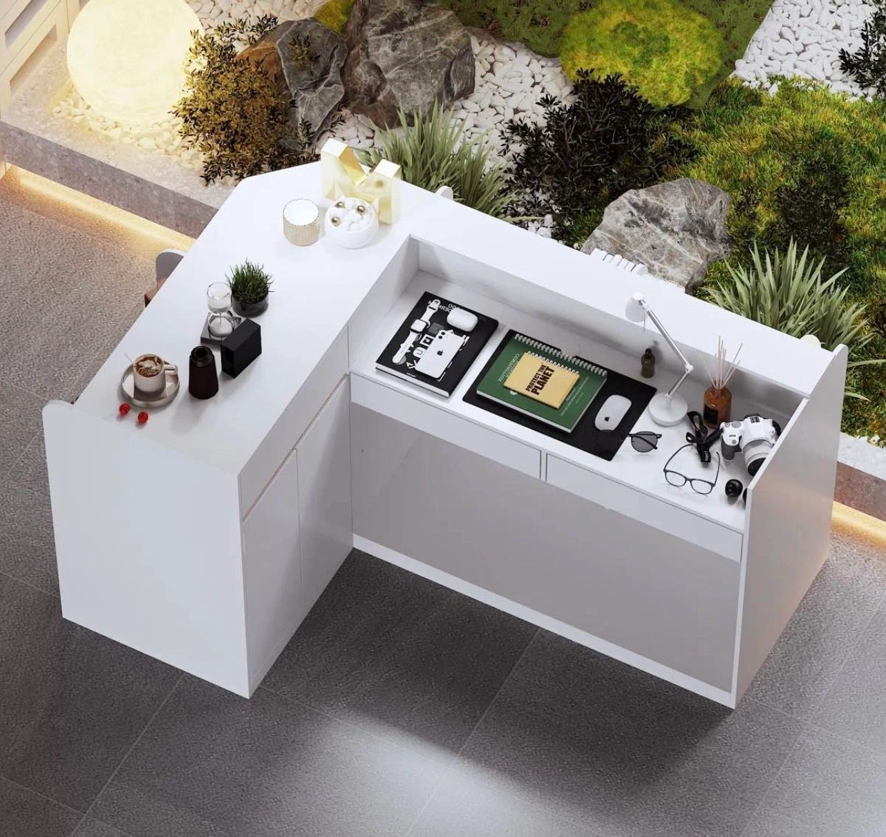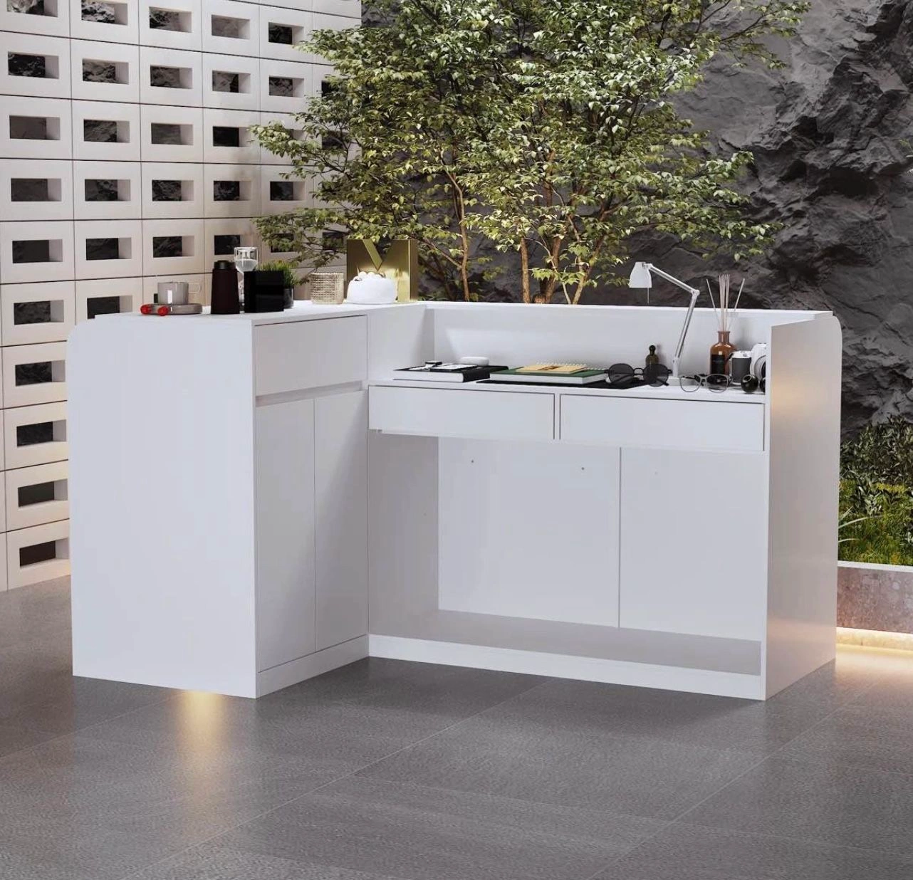 Modern Reception Cashier Desk With Open Shelving