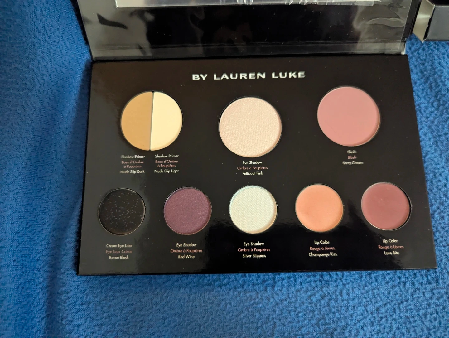 This BY LAUREN LUKE My Vintage Glams palette includes eyeshadows, blush, and lip colour. It contains a total of 9 shades for eyes, cheeks, and lips. There's a bonus lip gloss! It's got everything you need for a quick glam look. Completely new, never used.