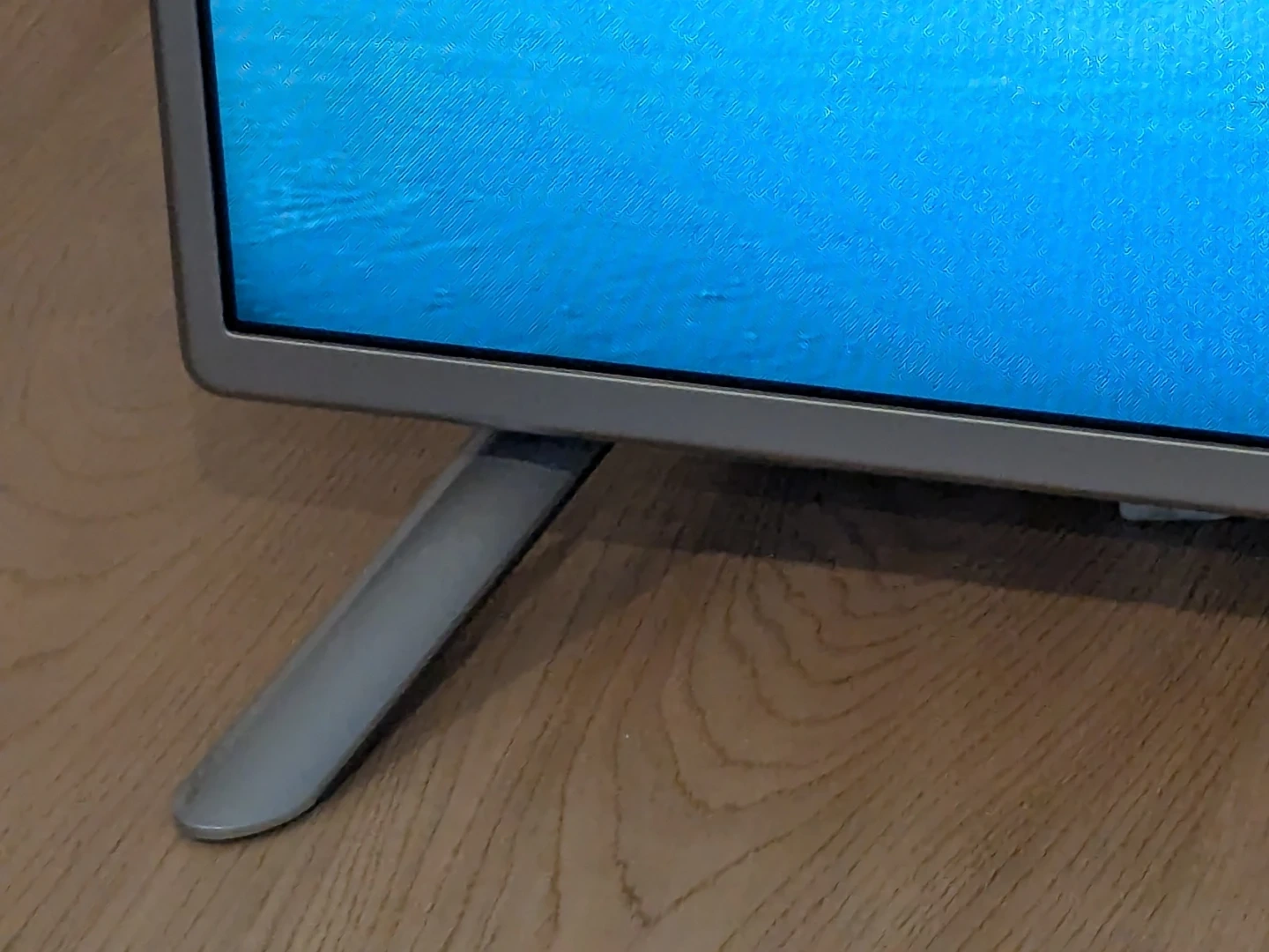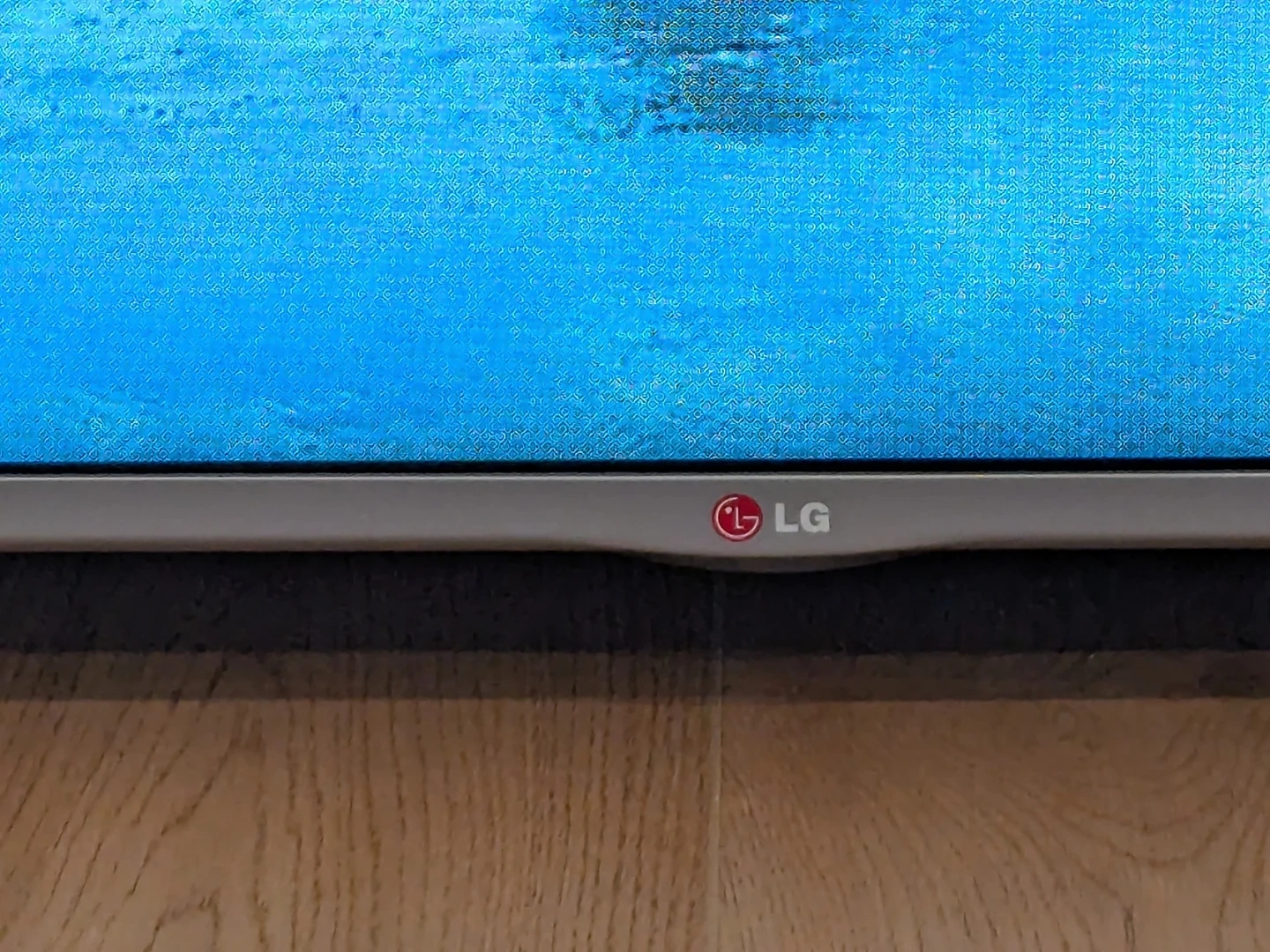LG television with a silver frame and stand. It has a bright, clear display showing a scenic image. This TV is ready for your viewing pleasure!