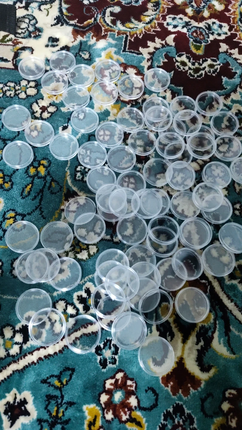 Round clear plastic containers for coin storage. These are great for organizing and protecting your collection. If your interested I can count them