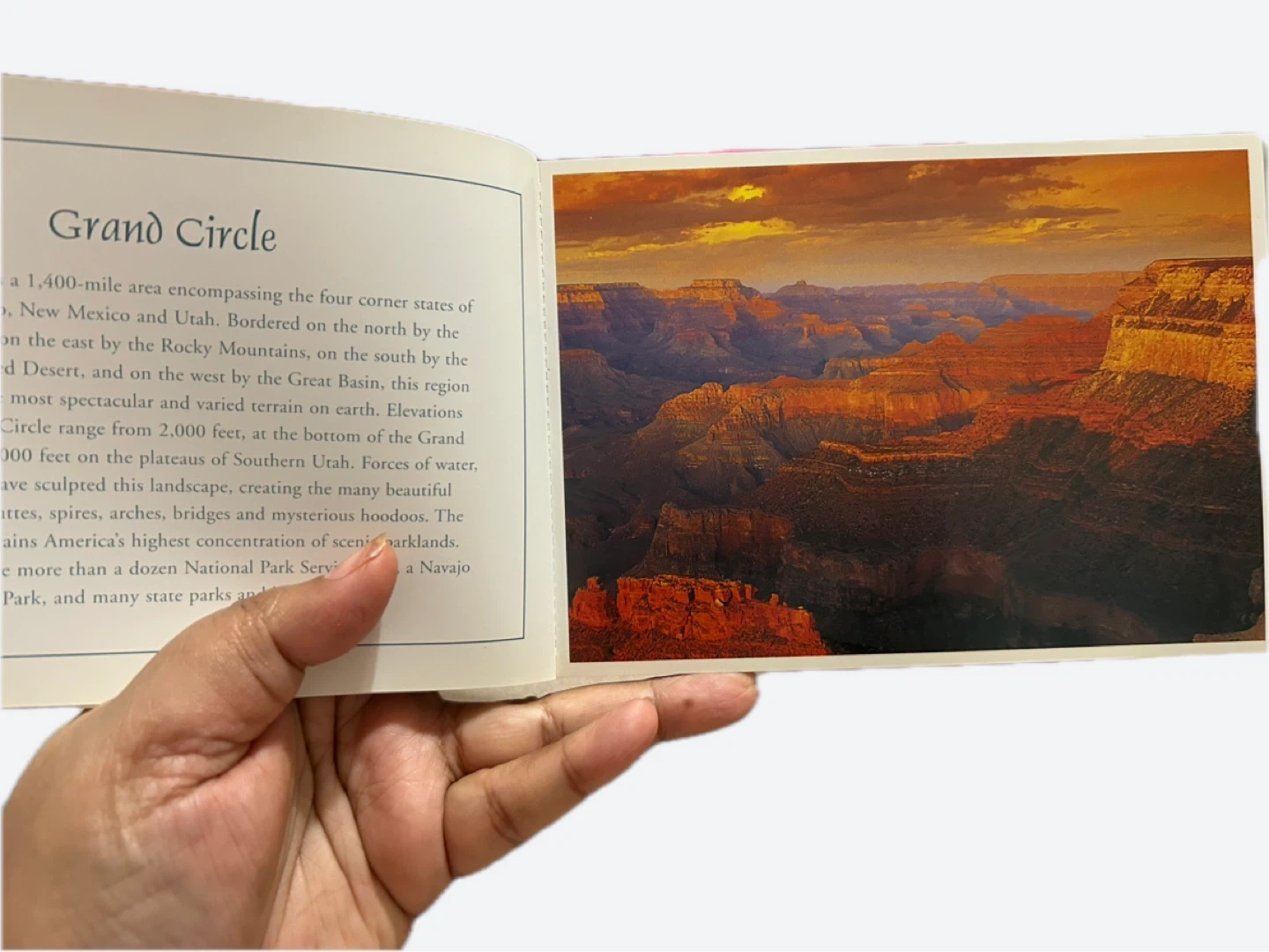 This book contains 31 postcards featuring the Grand Circle, a 1,400-mile area encompassing parts of Arizona, Utah, Colorado, and New Mexico. The images showcase diverse terrain and landscapes. Perfect for sending to friends or collecting.