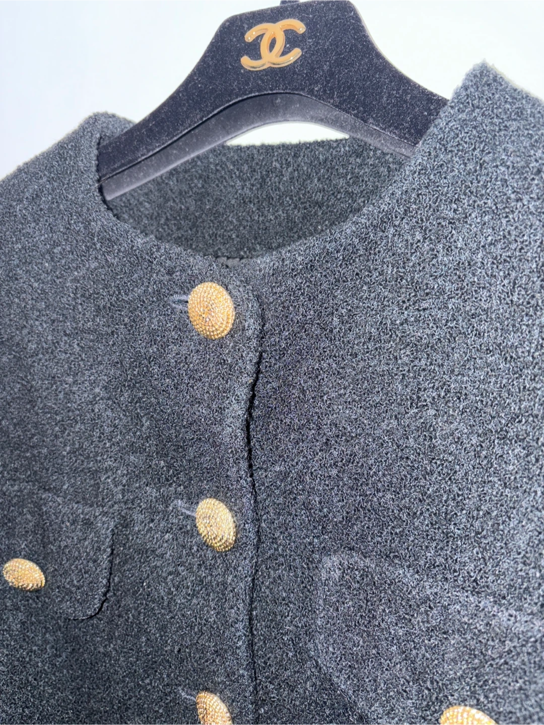 This United Colors of Benetton jacket is black and cropped. It features gold-tone buttons and front pockets. Made in Italy.