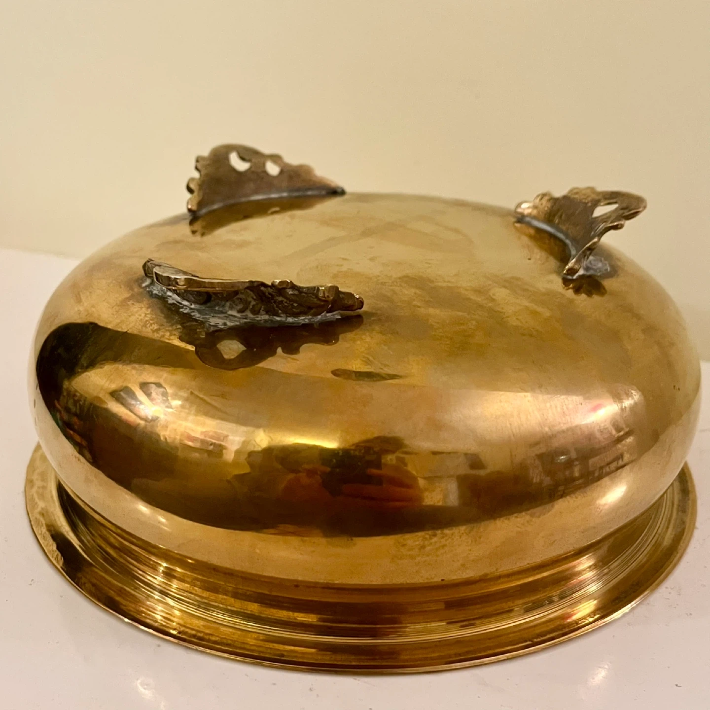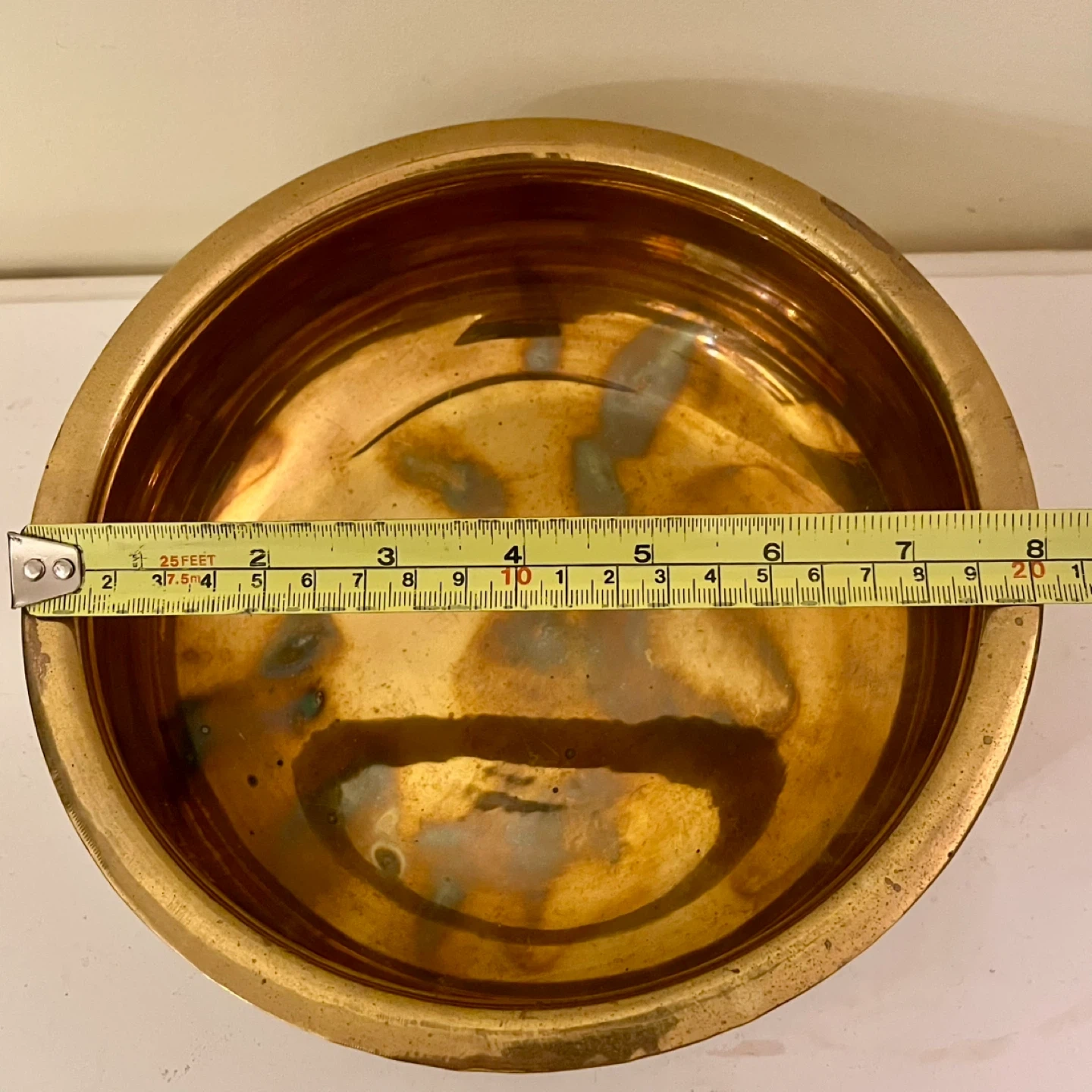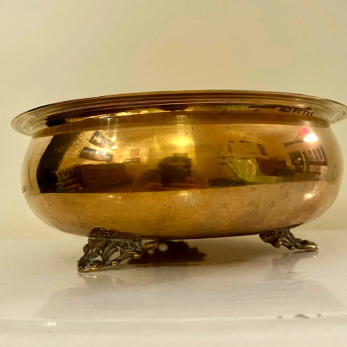 Beautiful mid-century low brass bowl - a jardinière or cachepot - with beautiful patina. Excellent vintage condition.