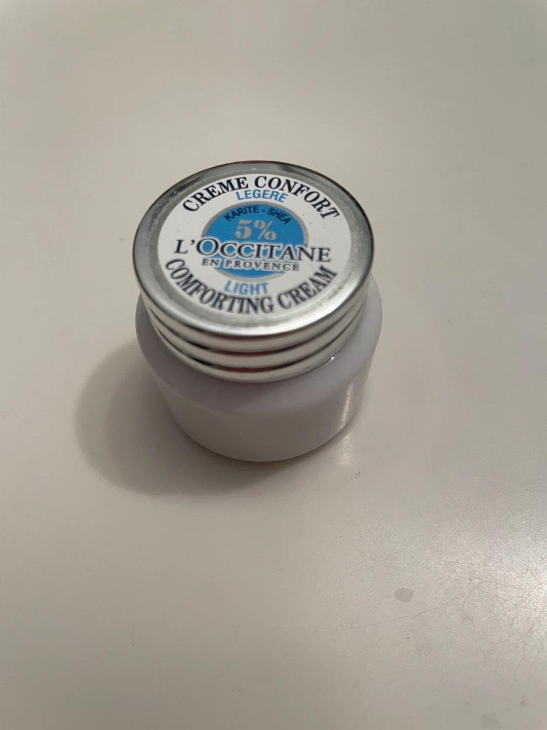 New L'Occitane en Provence Light Comforting face Cream with 5% Shea Butter. This lightweight cream is perfect for daily hydration. 8 ml
