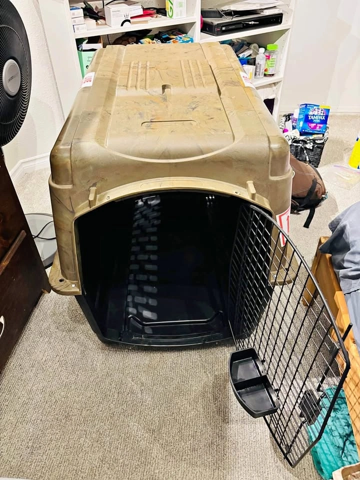 Excellent condition dog crate for sale. Measures 40 inches long, 27 inches wide, and 30 inches high. Airline travel approved and ideal for a dog weighing between 70-90 pounds. Comes with the crate pad pictured and the food/water dish that clips on the door. Has all the necessary hardware and is currently disassembled for easier transport but can reassemble prior to pick-up if requested. $175 or best offer.