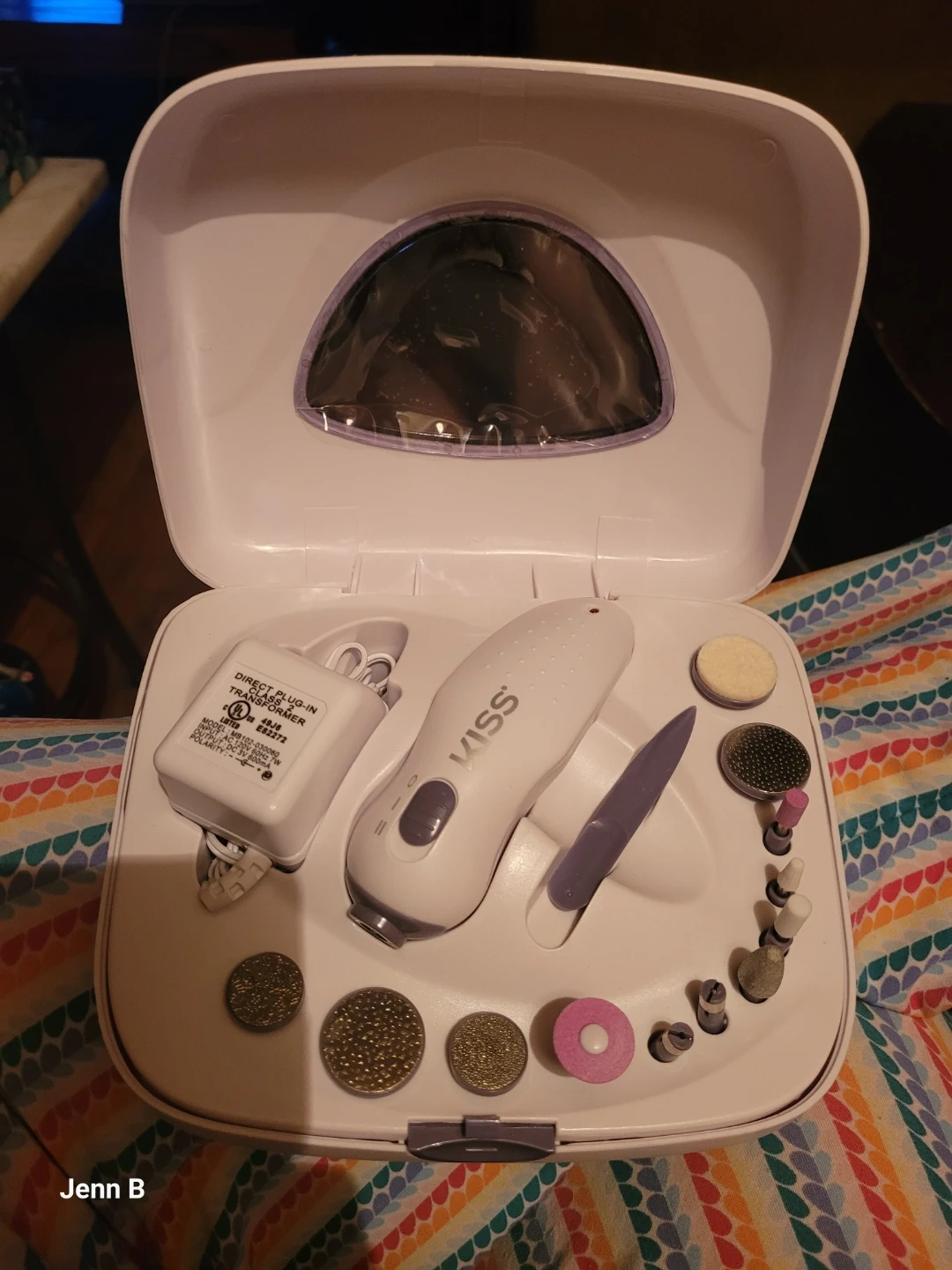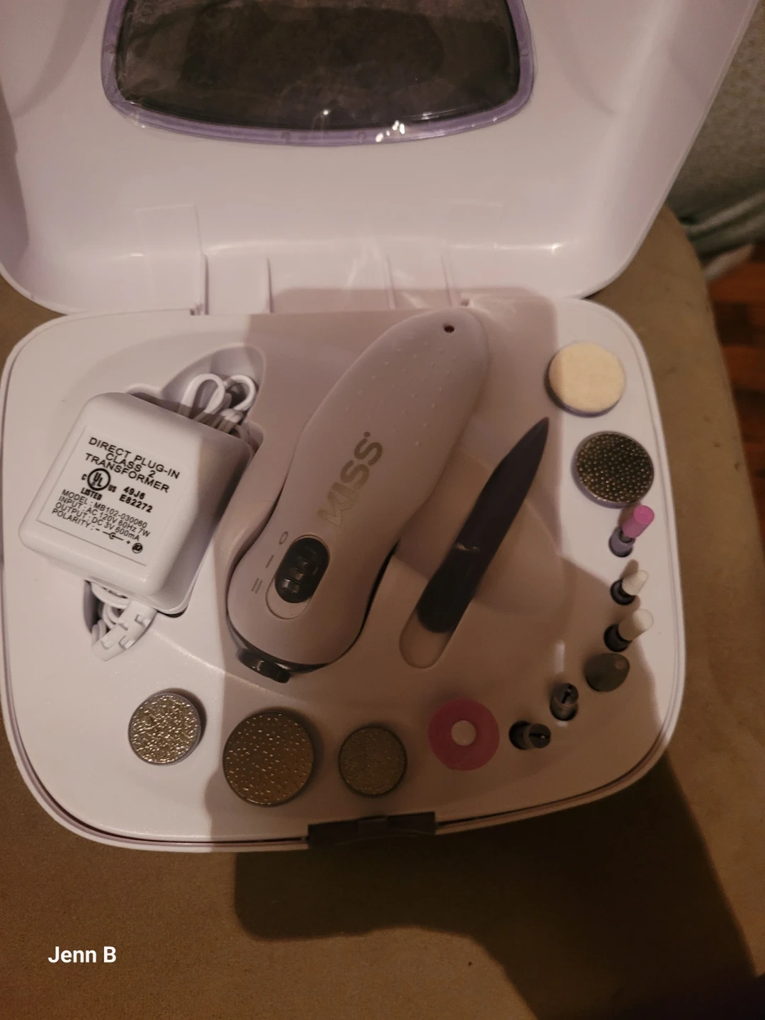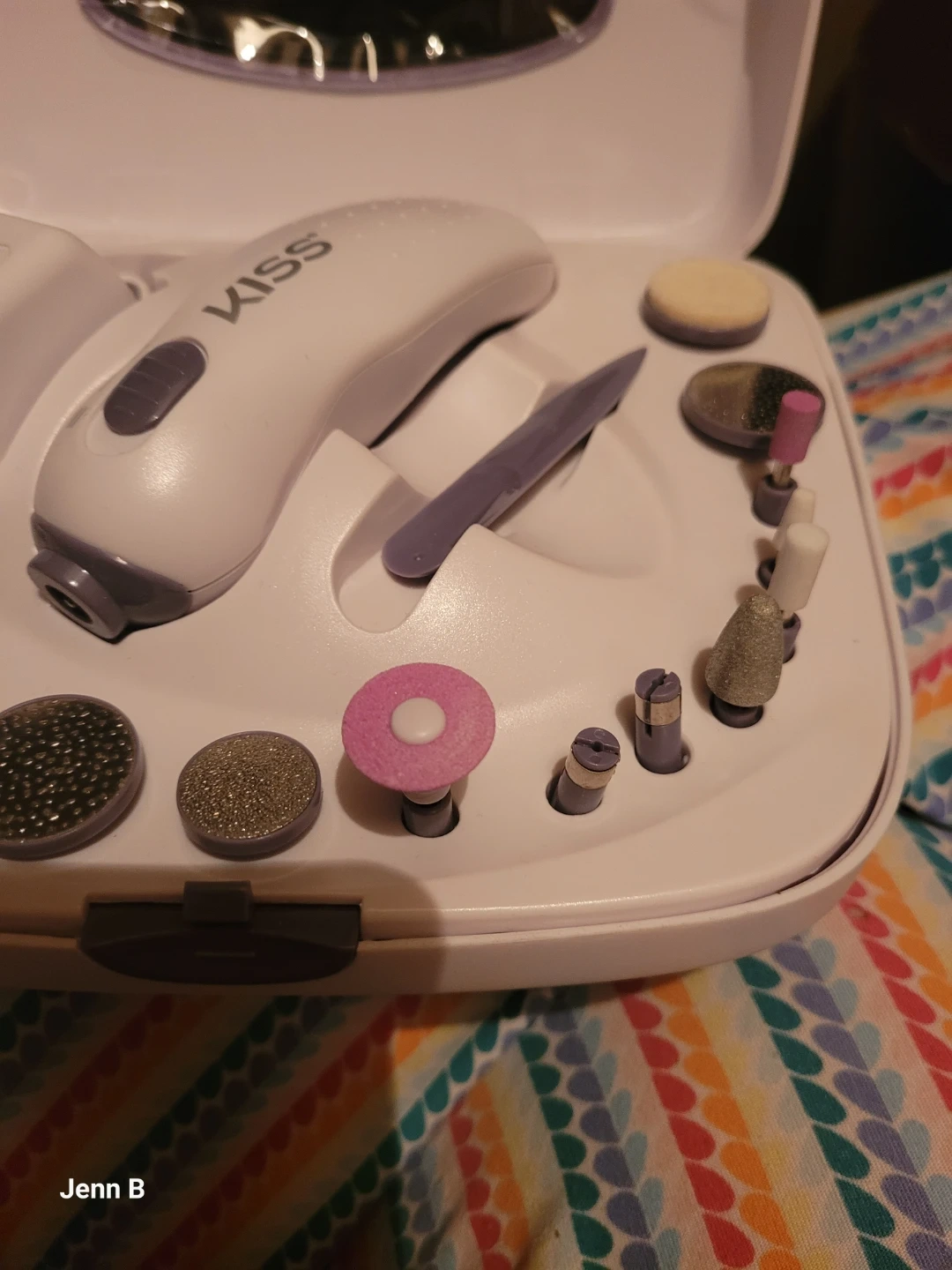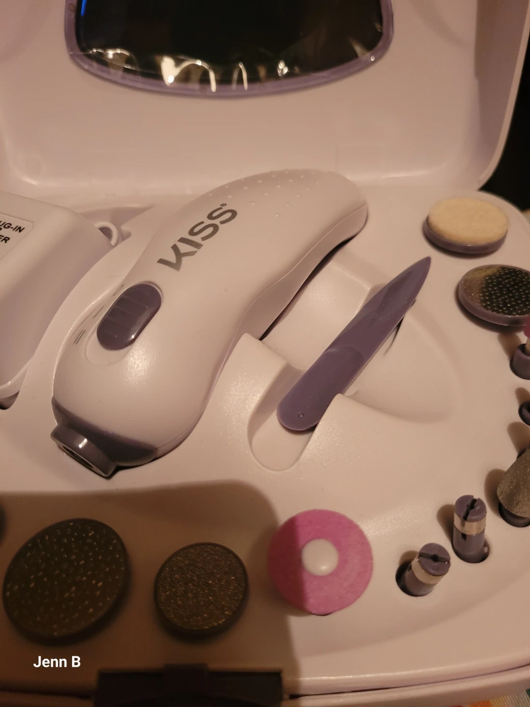 This KISS manicure and pedicure kit comes with a power unit and several attachments for nail care. It's designed for home use to achieve salon-quality results. Great for maintaining healthy-looking nails!