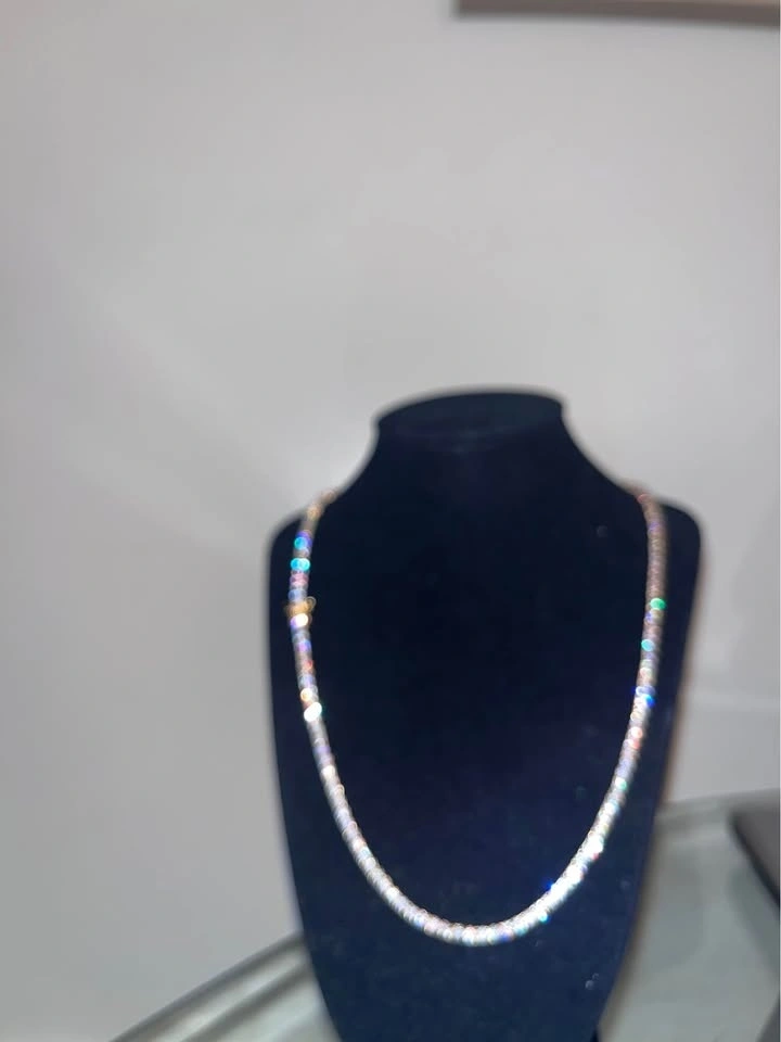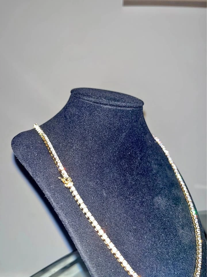 High-quality tennis chain, 24 inches long and 3mm wide, perfect for a clean and flashy look. Features VVS CZ simulated stones with a diamond-like shine. Made of stainless steel that won't rust or fade. Hypoallergenic and safe for daily wear. Premium shine and excellent craftsmanship. Perfect for everyday wear or special occasions. Looks luxurious, eye-catching, and matches any outfit. Message me for more details or pictures.