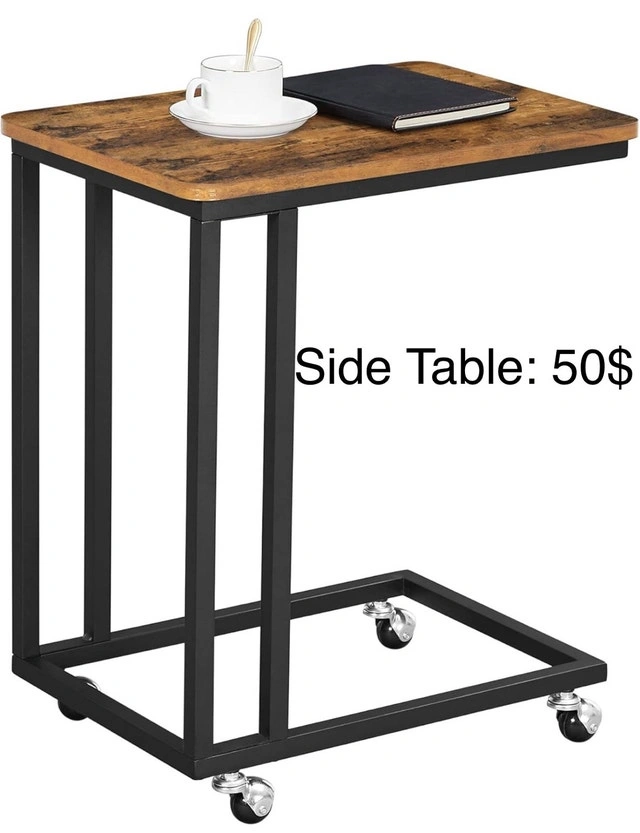This used side table features a wood-like top and a sturdy black metal frame, perfect for adding a touch of industrial charm to any room. It's equipped with rolling casters for easy mobility. Asking $50. This little table is looking for a new home where it can be useful, perhaps to hold a cup of coffee or a book! Still available.