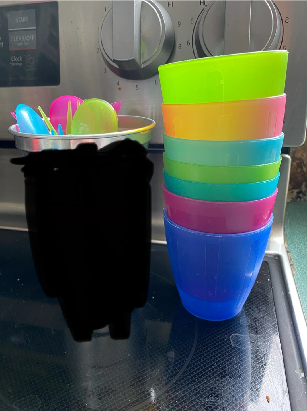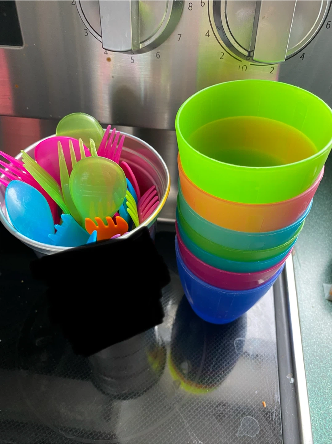 Set of 8 Colorful Plastic Cups with Utensils