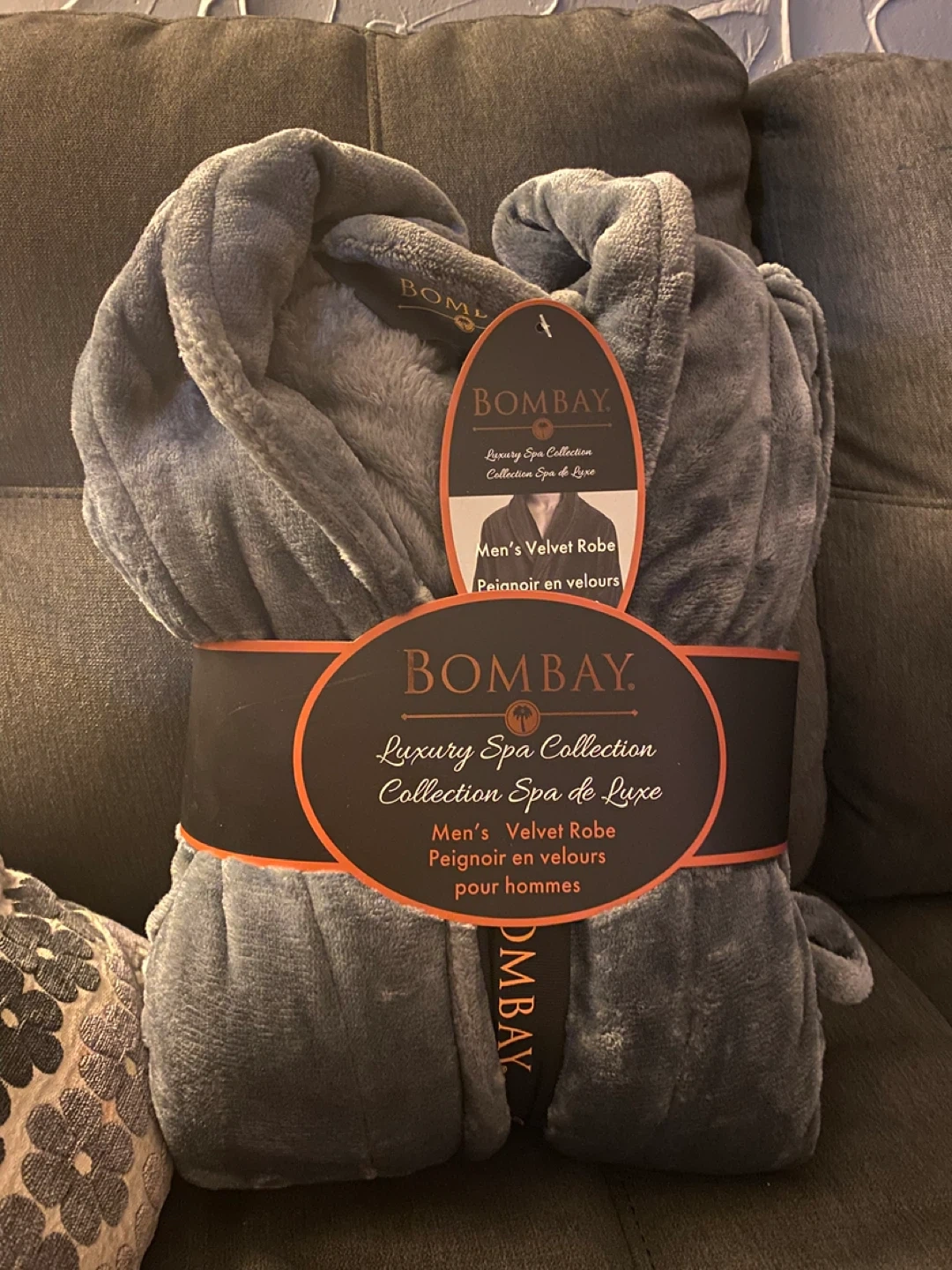 Experience ultimate comfort with this men's velvet robe from Bombay's Luxury Spa Collection. It's incredibly soft and perfect for lounging. This robe is designed for relaxation at home.