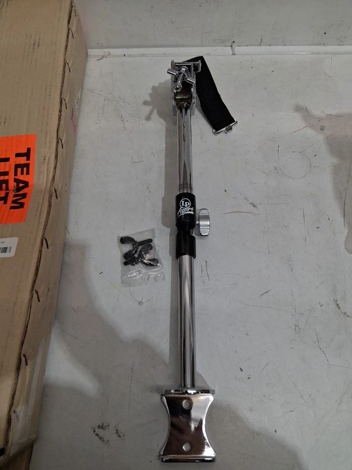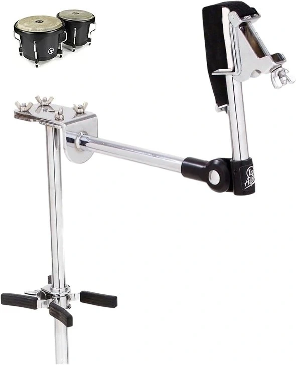 This is a Latin Percussion (LP) Aspire Slide Mount Bongo Bracket in chrome, perfect for adding bongos to your setup!