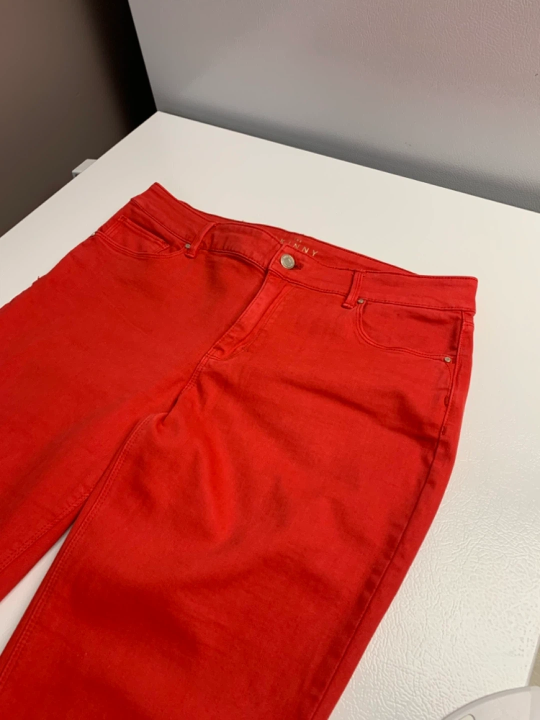 Looking for something Red to wear for Valentines these White House Black Market skinny ankle jeans are a vibrant red colour. They are a size 10. These jeans would be great for adding a pop of colour to any outfit!