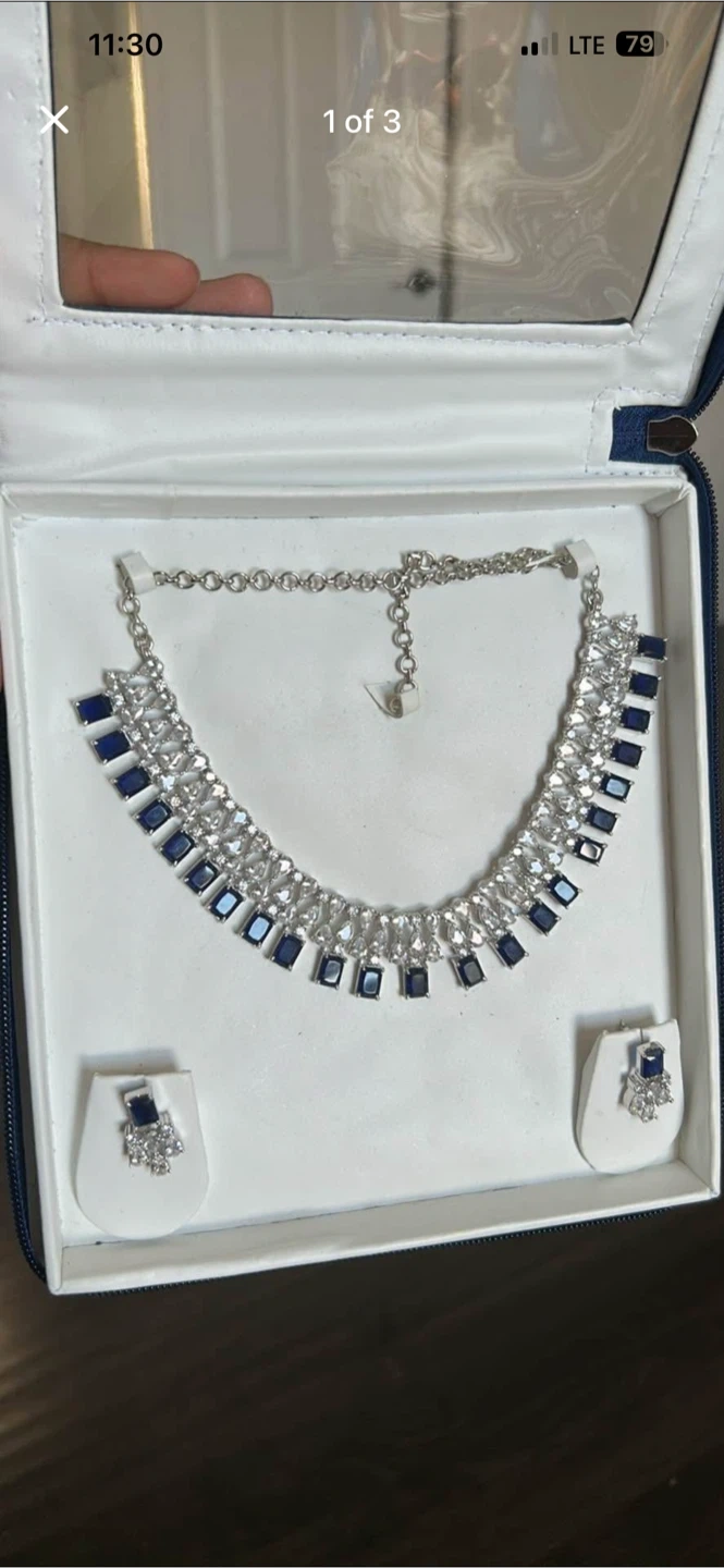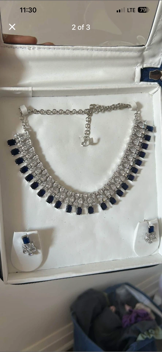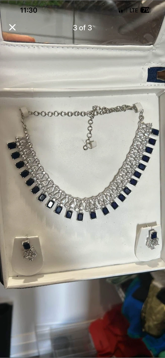 A timeless statement piece designed for those who appreciate fine detailing and effortless elegance. Comes with matching blue and white diamond jewellery set.