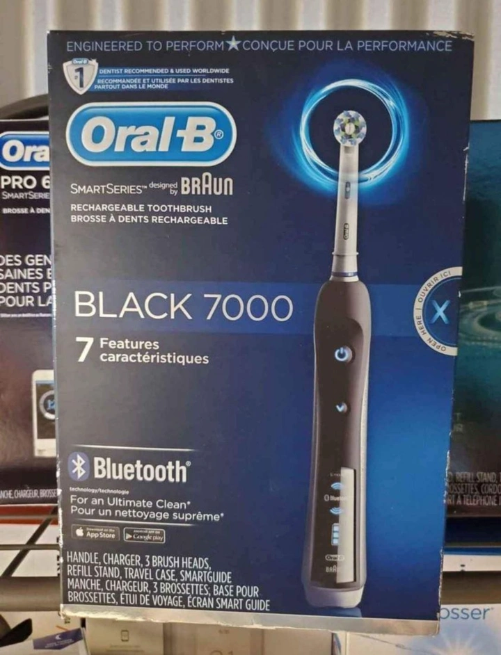 Oral-B 7000 SmartSeries Rechargeable Power Electric Toothbrush with 3 Replacement Brush Heads, Bluetooth Connectivity and Travel Case, Black, Powered for sale @ 195$ cash only