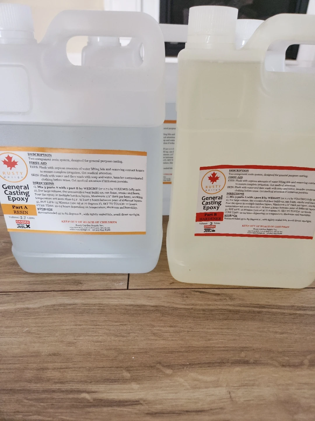 Two-component resin system for general purpose casting. Part A is a 2.7 Litres Resin 3 pcs, and Part B is a 3 Litres Hardener. Pot life is 15 minutes per container.