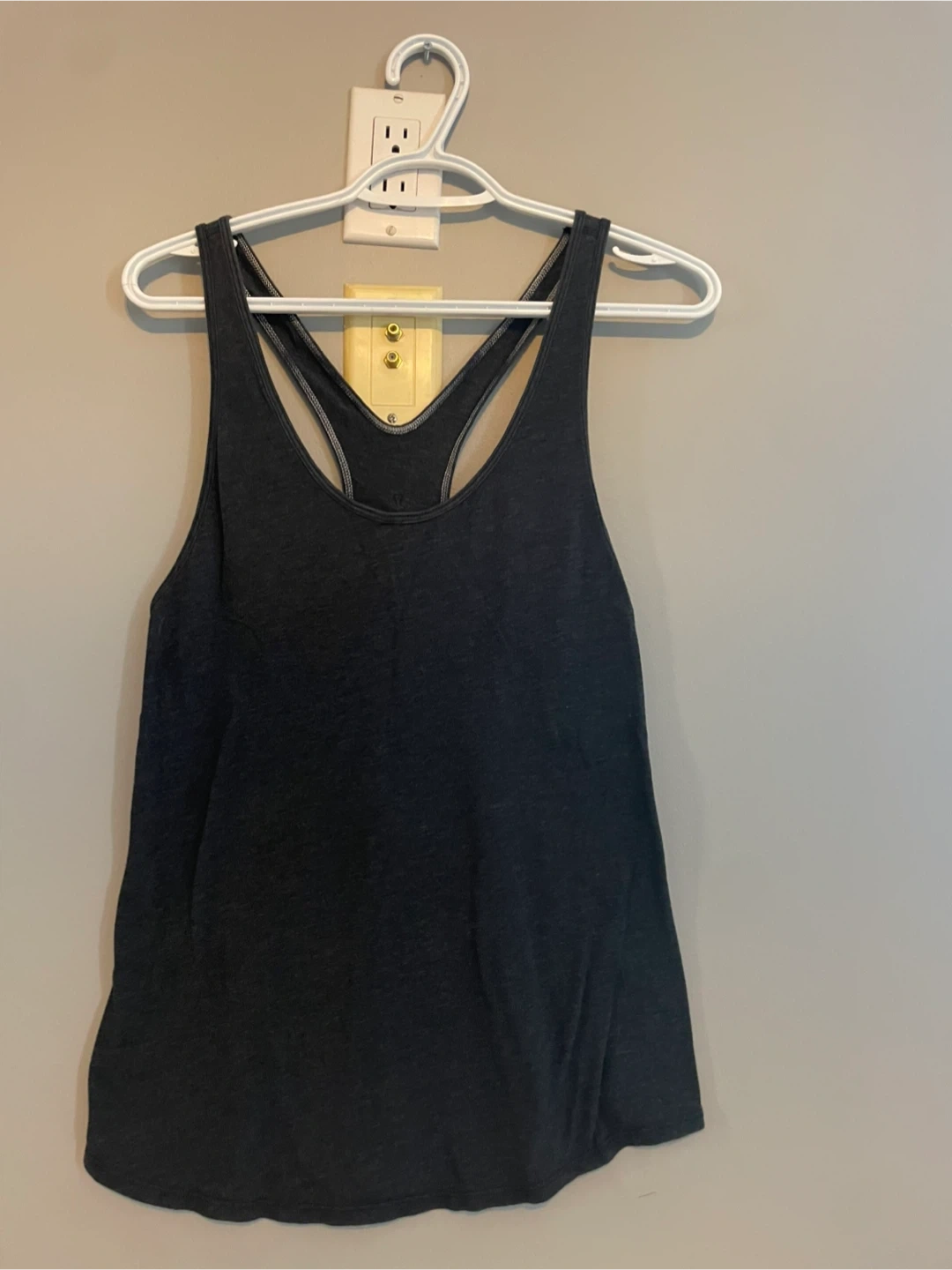 This is a Lululemon Athletica black racerback tank top. It's made of a soft, breathable fabric. This tank is great for workouts or casual wear.