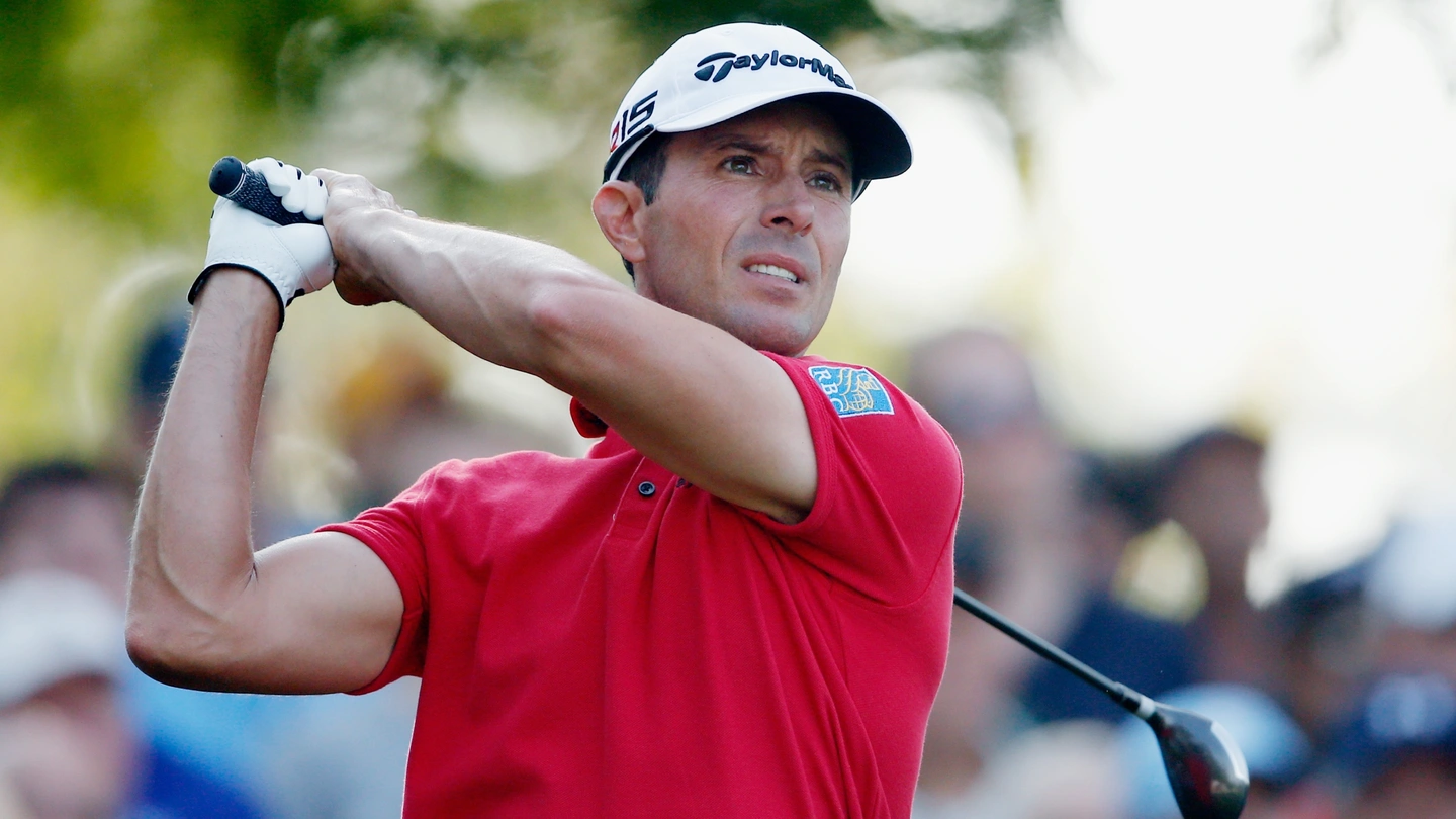 Classic red, white, and blue leather design with bold PGA TOUR branding.