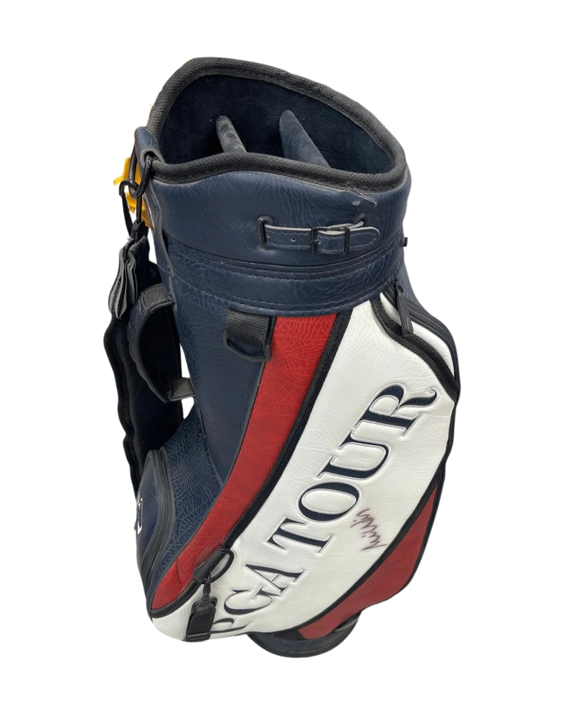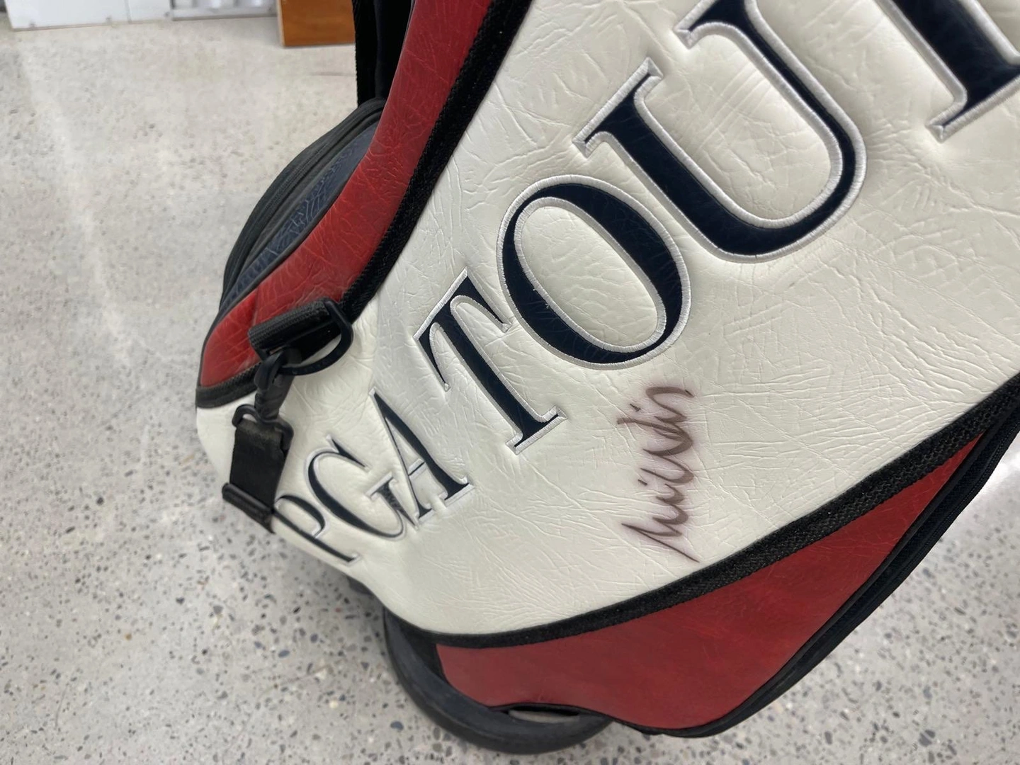 Mike Weir autograph, signed golf bag, PGA Tour bag, golf memorabilia, Canadian golf legend, Masters champion, collectible sports memorabilia, autographed PGA equipment
