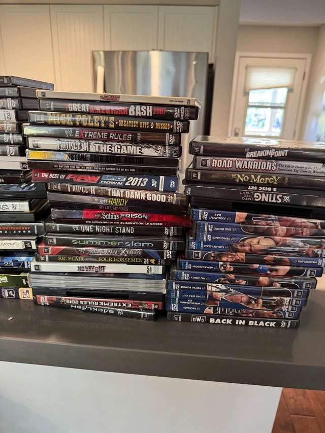 Huge WWE Wrestling DVD lot, 3 bins full. Likely have every single title. Need gone as I’m moving. Asking $2000 or best offer. Pickup in Collingwood.