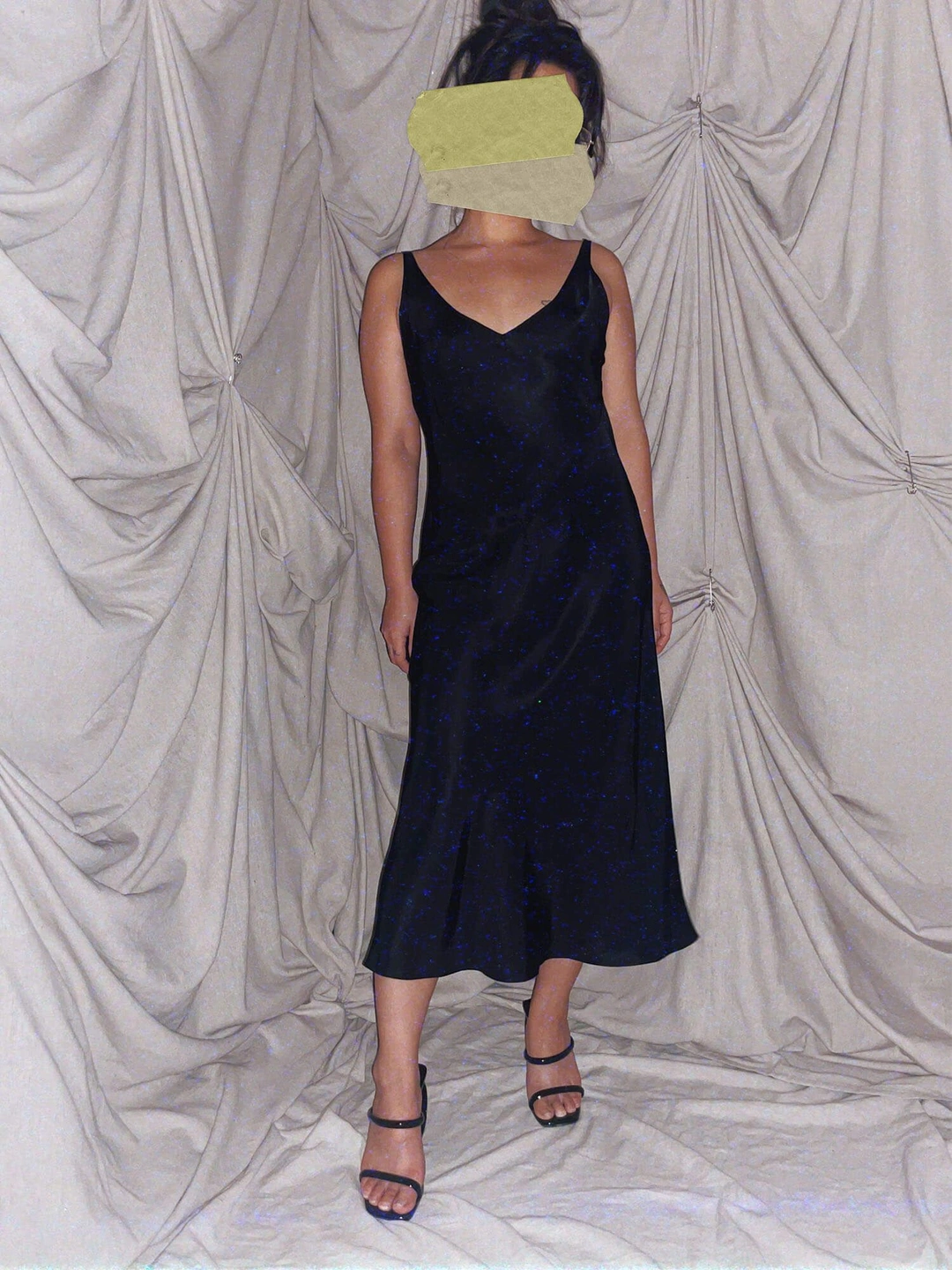 (black babaton slip dress midi mid knee mermaid fitted vneck sleeveless silk aritzia wilfred)